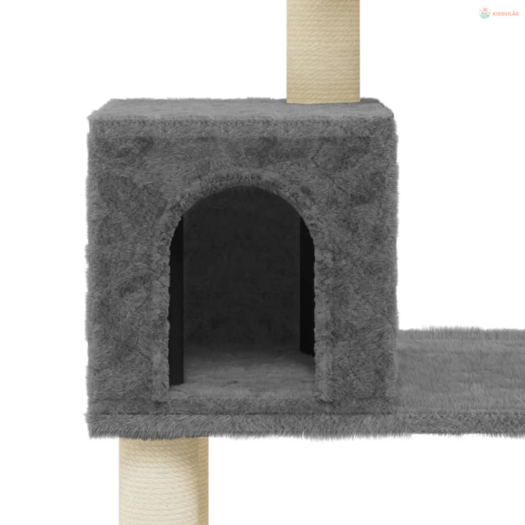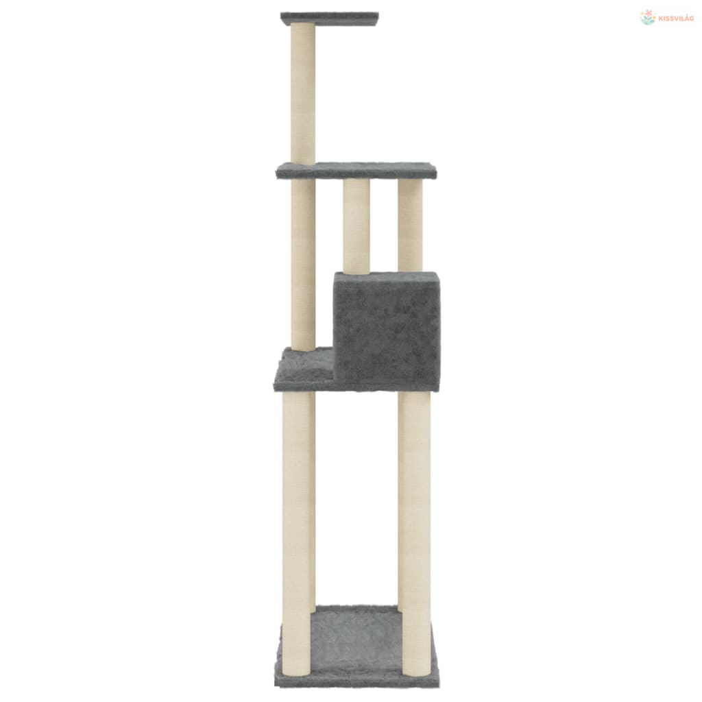 Sötétszürke macskabútor szizál kaparófákkal 147 cm