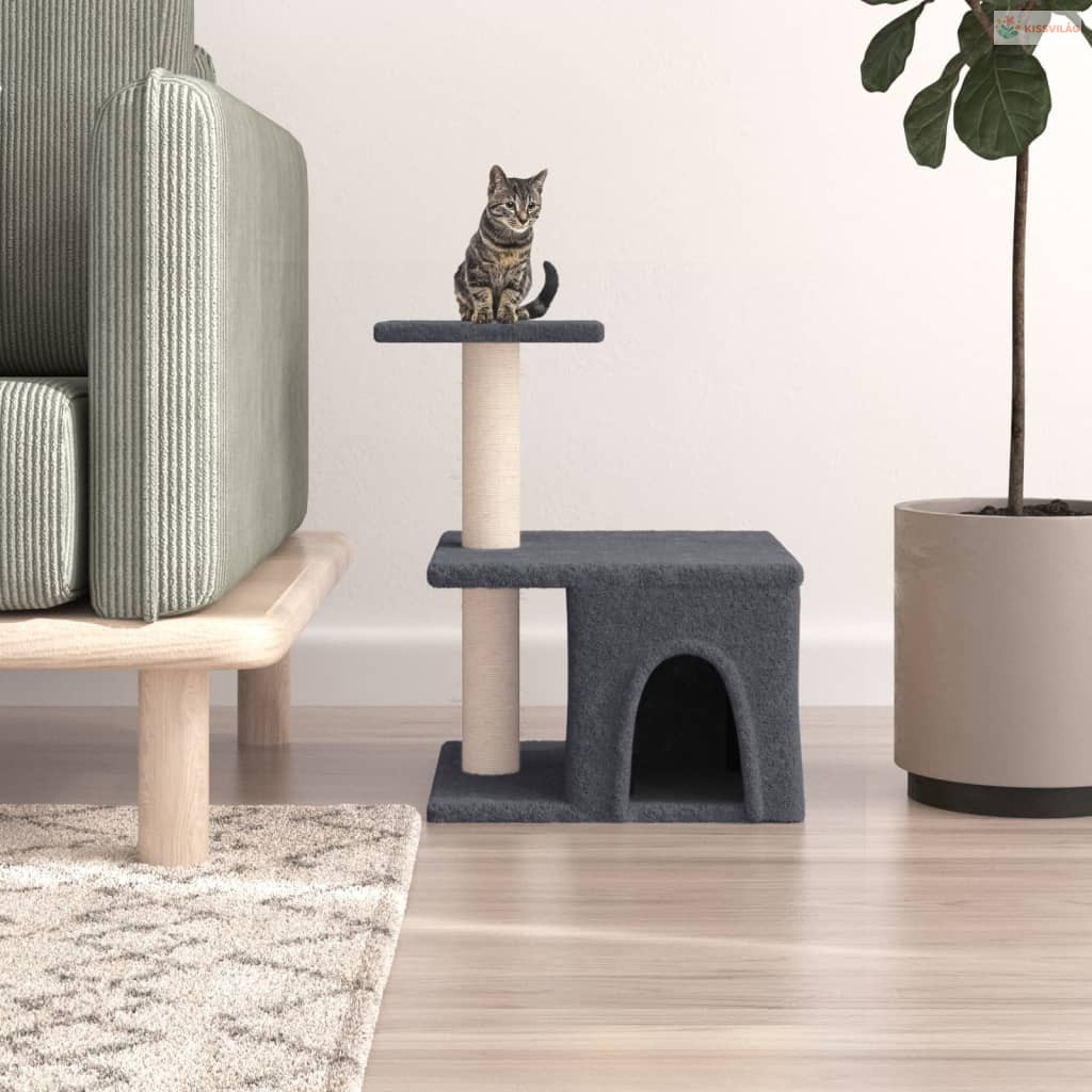 Sötétszürke macskabútor szizál kaparófákkal 48 cm