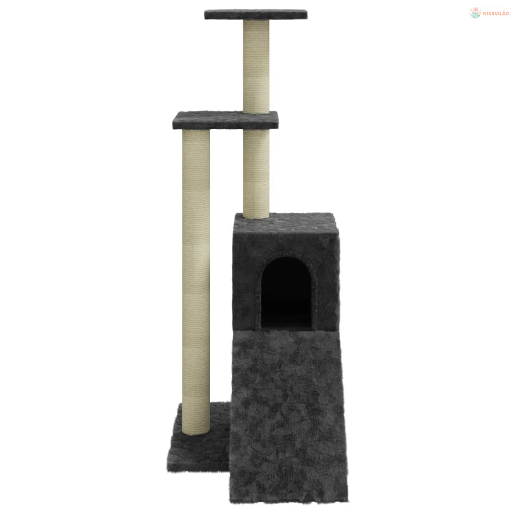 Sötétszürke macskabútor szizál kaparófákkal 92 cm