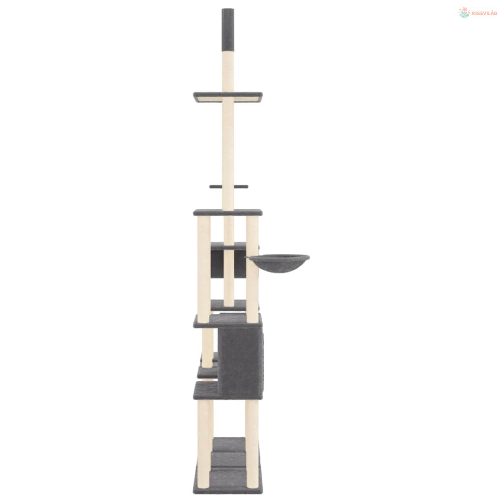 Sötétszürke macskabútor szizál kaparófával 279 cm