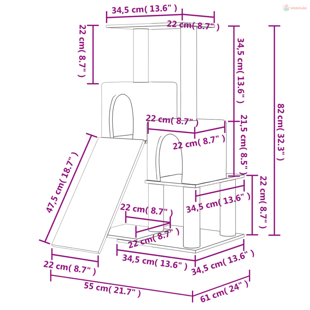 Sötétszürke macskabútor szizál kaparófával 82 cm
