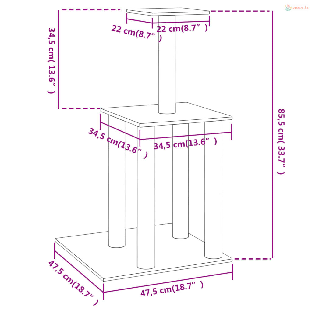 • Többszintű macskatorony: A többszintes macskabútor emelvényekkel lett ellátva, tökéletes helyet biztosítva macskáinak a mászáshoz, környezetük megfigyeléséhez, a kaparáshoz, a bujkáláshoz és a pihenéshez.