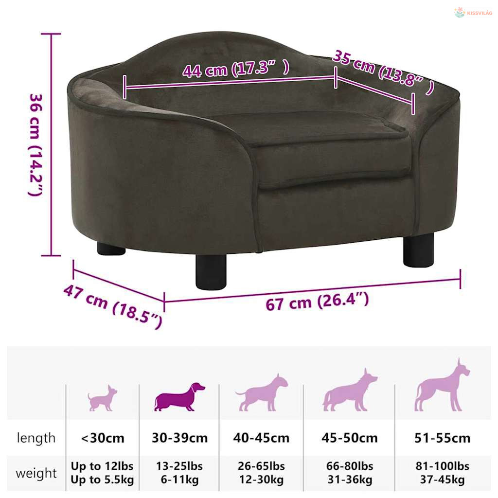 Sötétszürke plüss kutyakanapé 67 x 47 x 36 cm
