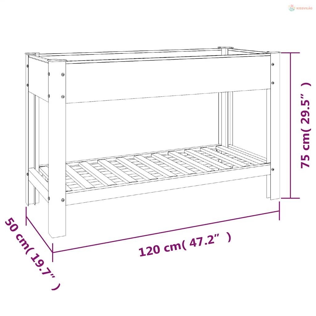 • Bőséges hely: A magaságyás bőséges helyet biztosít sok növény, zöldség, fűszernövény és virág számára. Emellett a polc extra tárolóhelyet kínál cserepek és szerszámok számára.