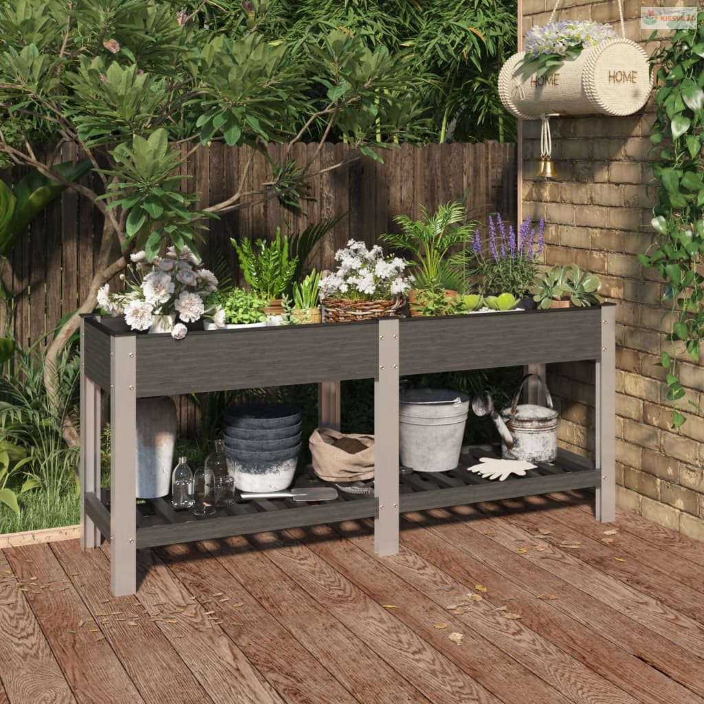 Szürke WPC kerti magaságyás polccal 175 x 50 x 75 cm