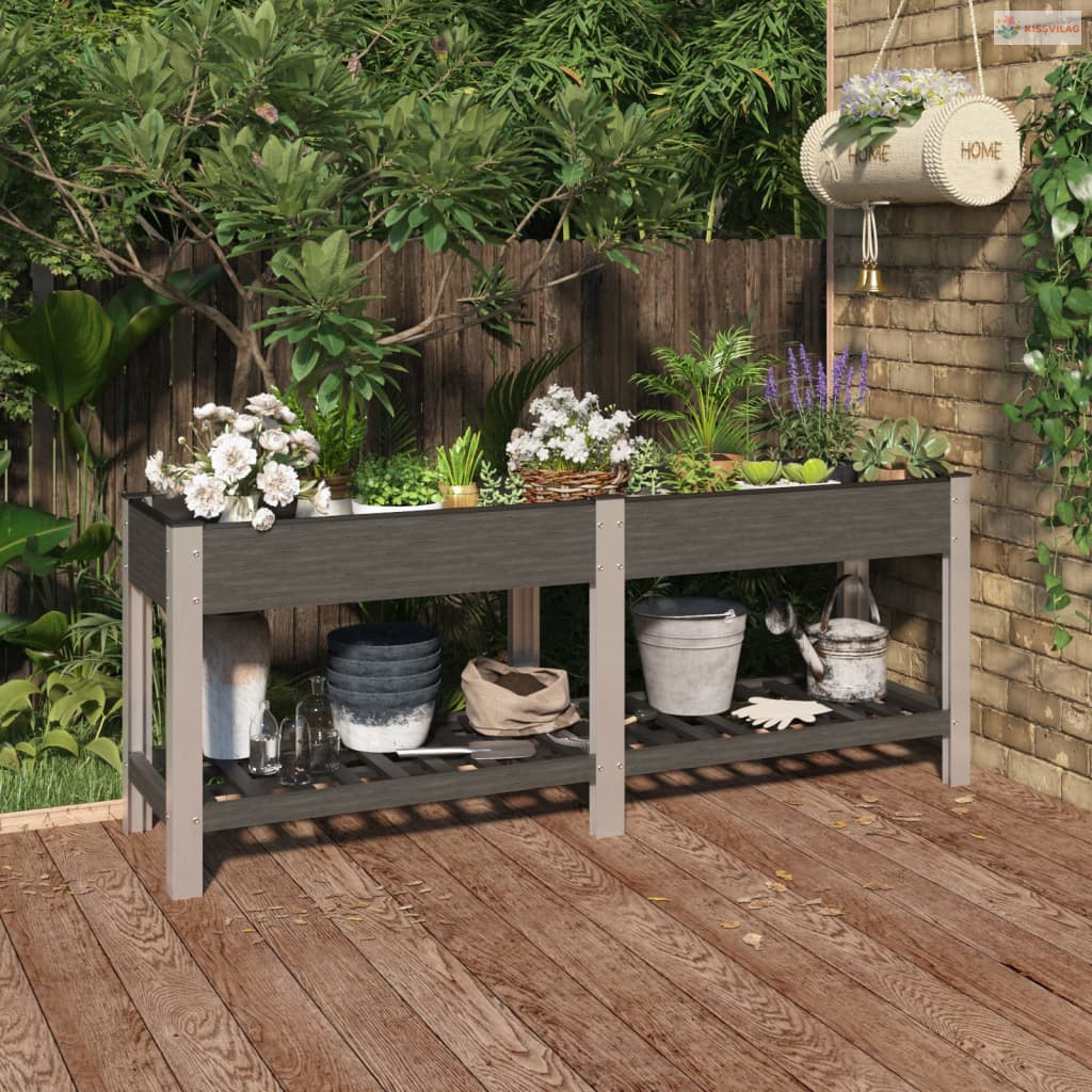 Szürke WPC kerti magaságyás polccal 200 x 50 x 75 cm