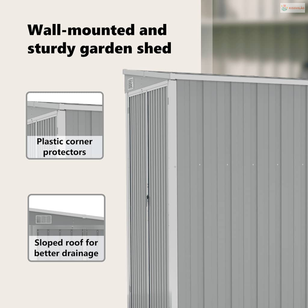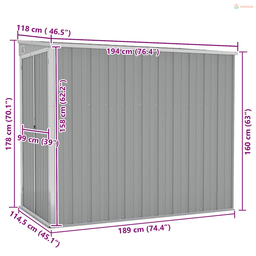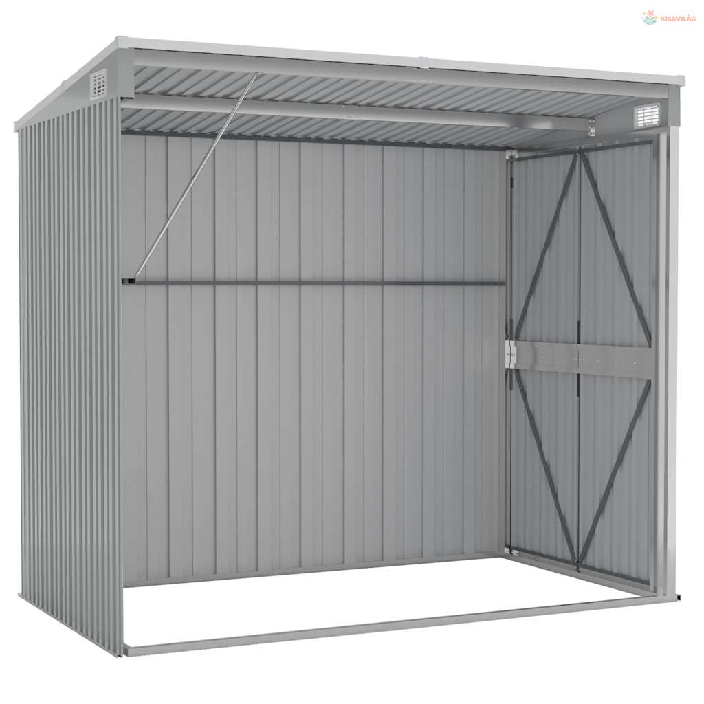 Szürke acél falhoz erősíthető kerti fészer 118 x 194 x 178 cm