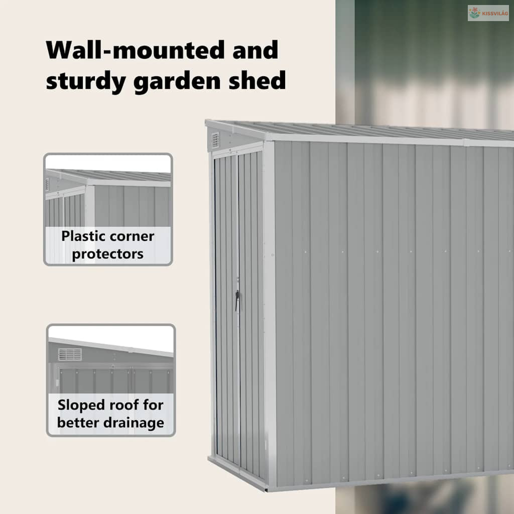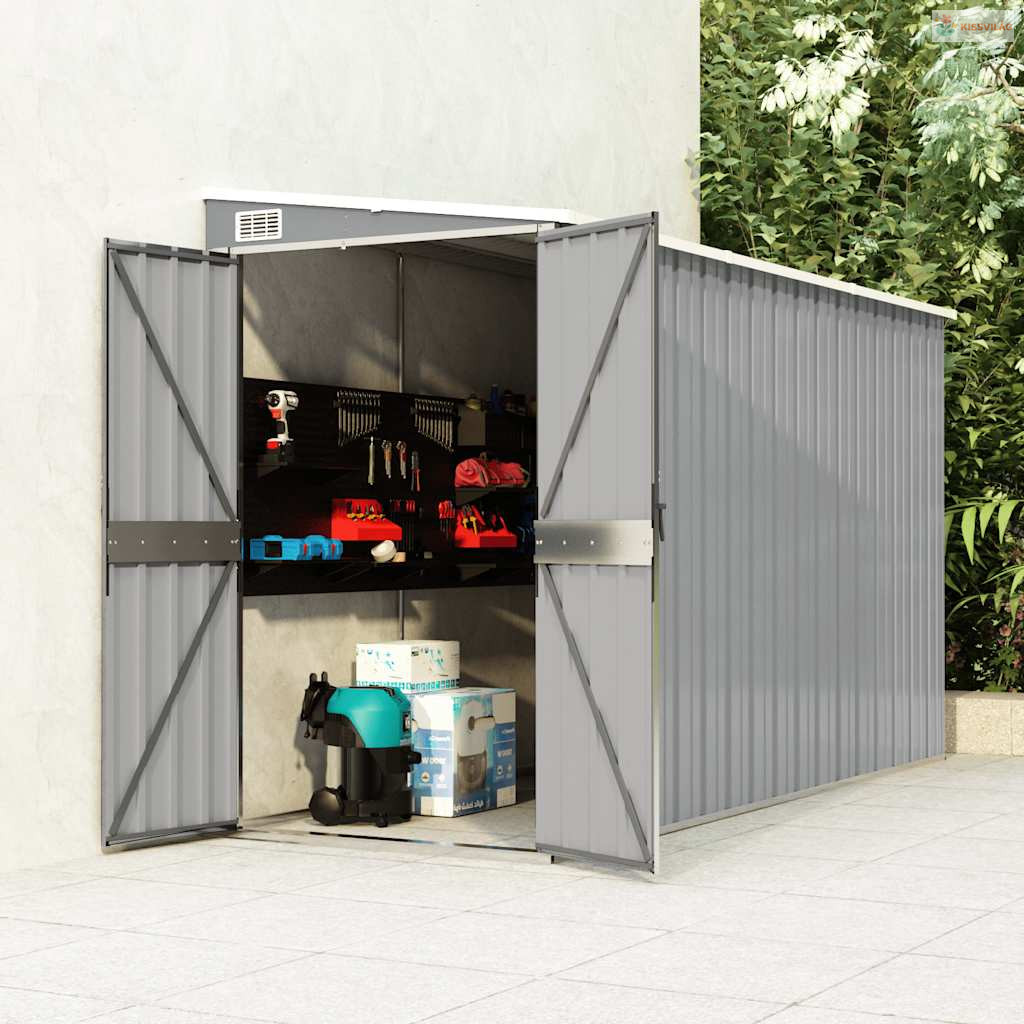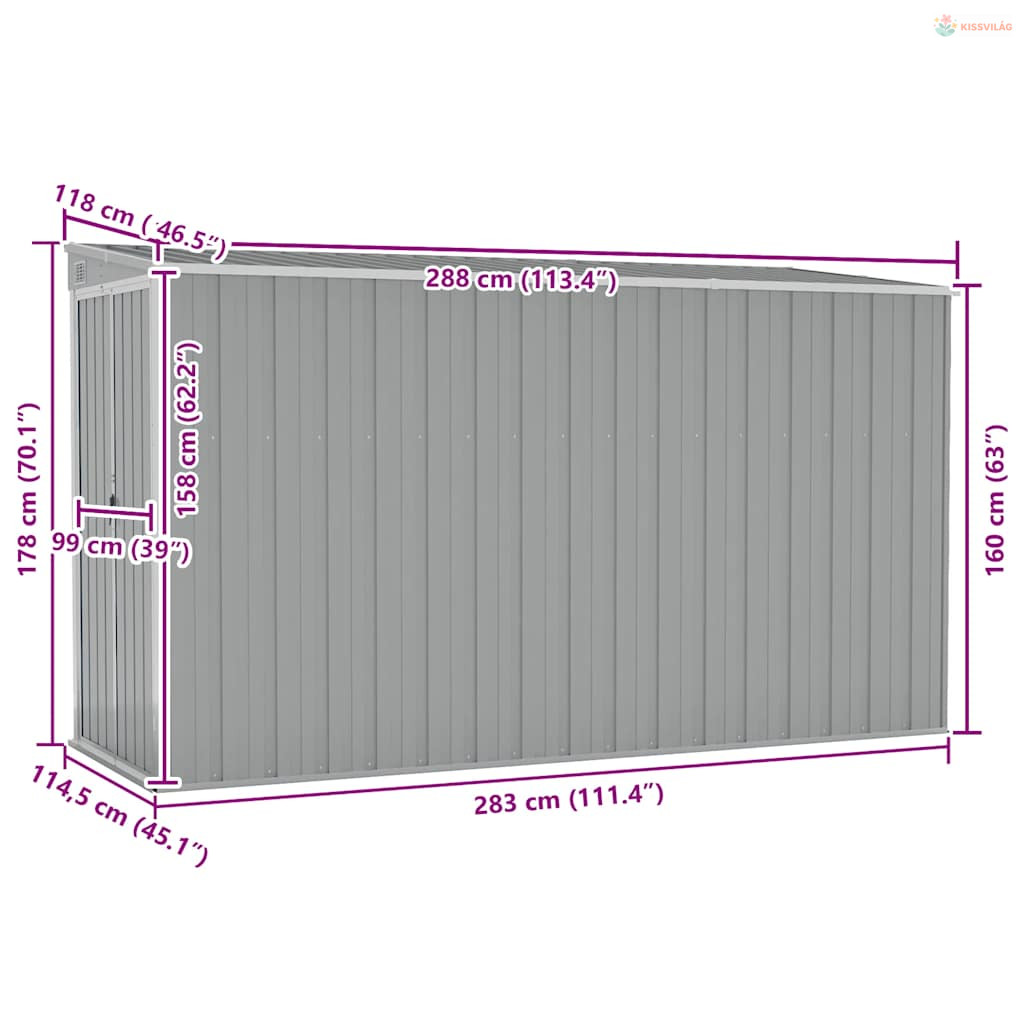 Szürke acél falhoz erősíthető kerti fészer 118 x 288 x 178 cm