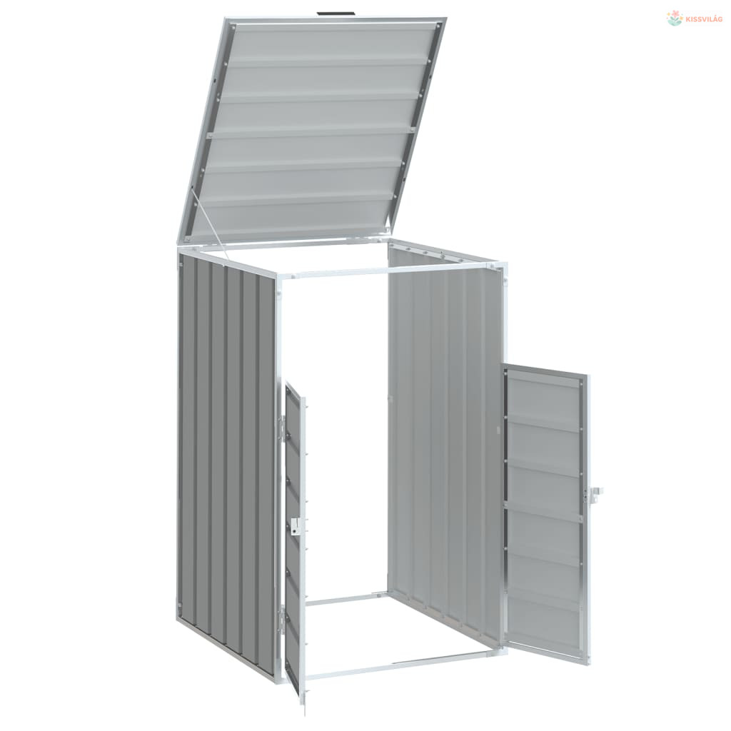 Szürke acél kerekes szemetes tároló 1 szemeteskukához 72 x 81 x 115 cm