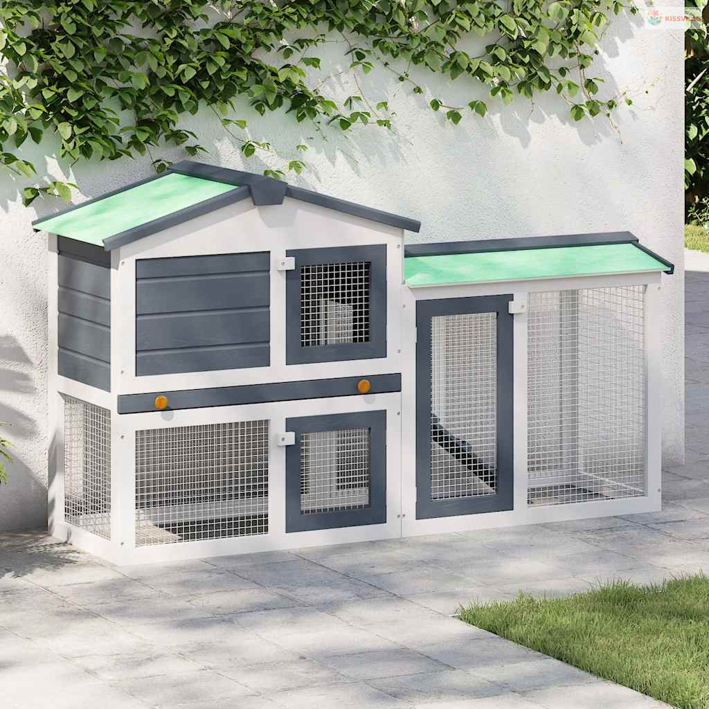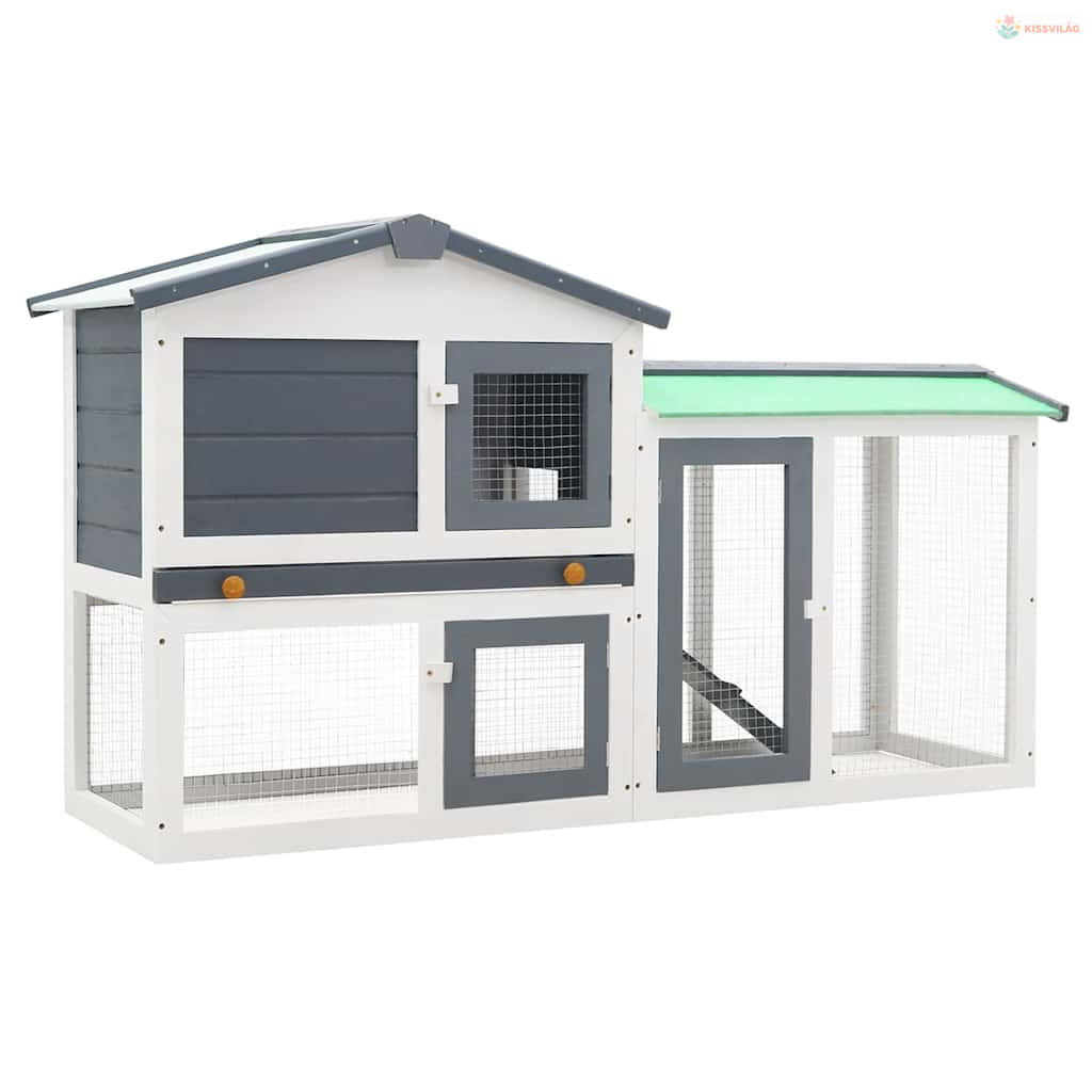 Szürke és fehér fa kültéri nyúlketrec 145 x 45 x 84 cm