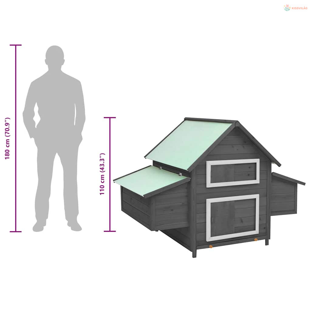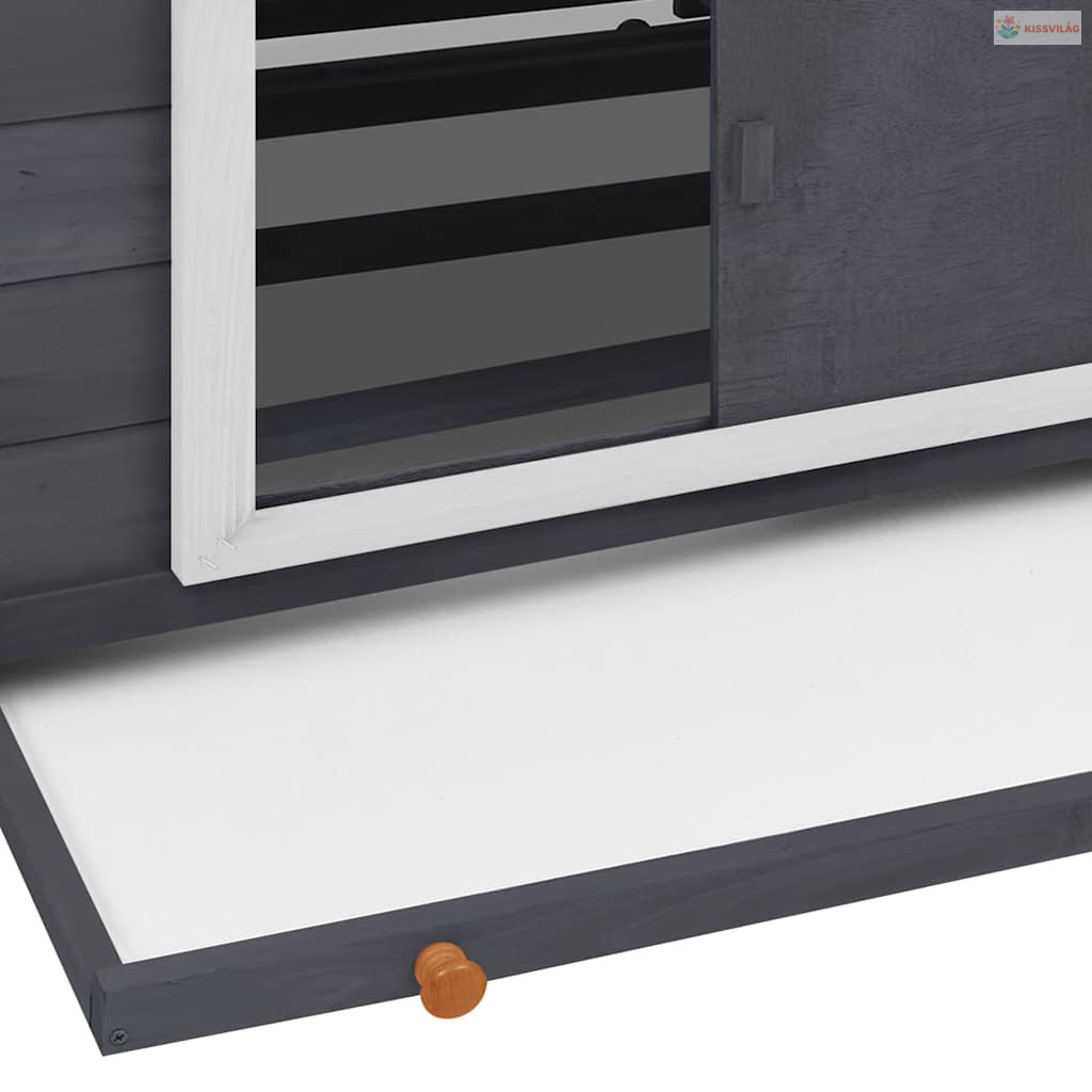 Szürke-fehér tömör fenyőfa tyúkól 150 x 96 x 110 cm