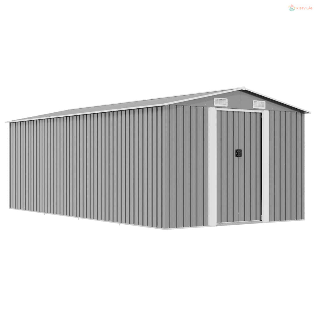 Szürke fém kerti fészer 257 x 489 x 181 cm