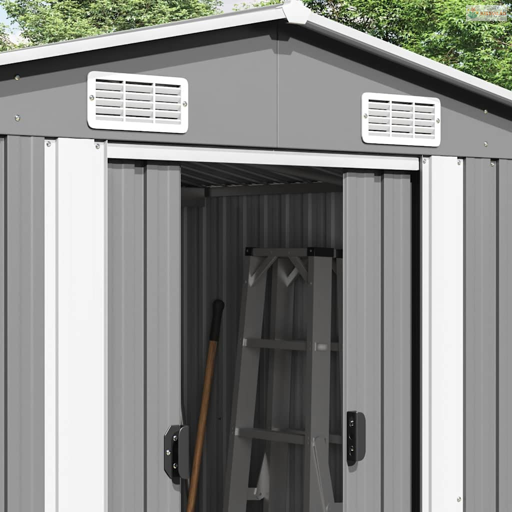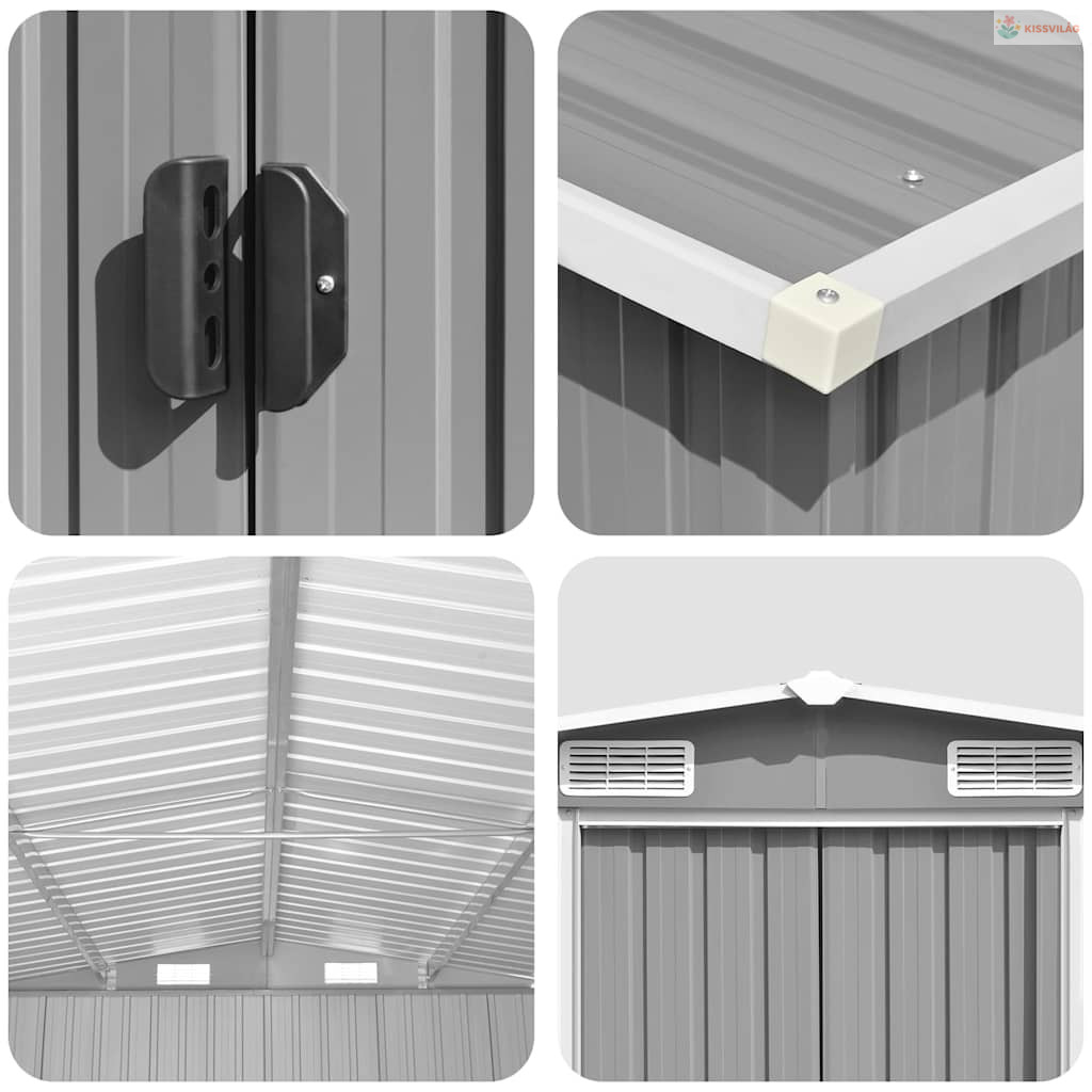 Ez a tárolóház elöl és hátul is szellőzőnyílásokkal rendelkezik, amelyek kiváló szellőzést biztosítanak. Az elején található dupla tolóajtók könnyű be- és kijutást tesznek lehetővé. A horganyzott acél konstrukciónak és a porszórt bevonatnak köszönhetően a szerszámtároló tartós és erős.