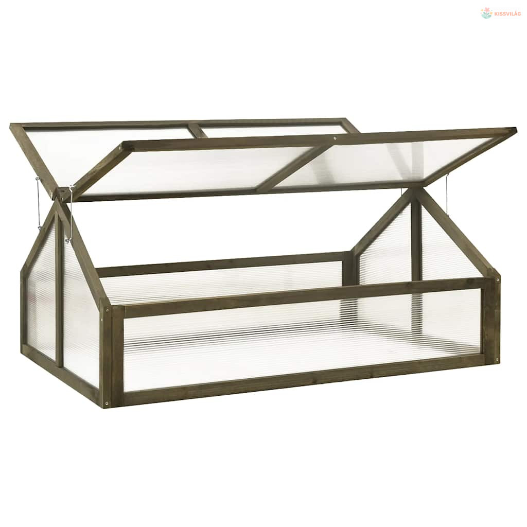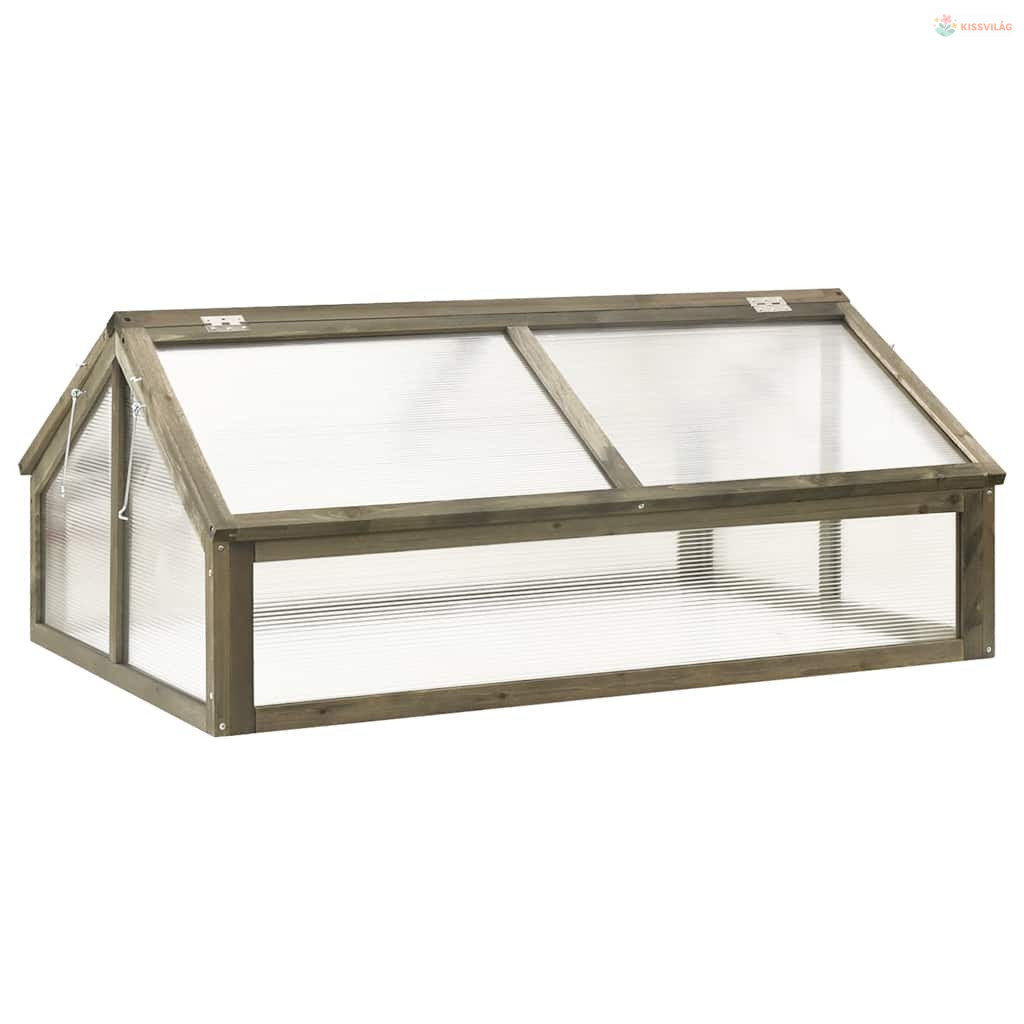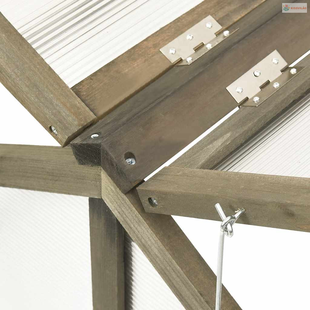 Ez a fa kerti melegház tömör fenyőfából készült, így stabil és strapabíró. Elég széles és mély ahhoz, hogy kellő mennyiségű hely és föld jusson növényeinek, zöldségeinek, fűszernövényeinek és virágainak. A zsanéros tetőnek köszönhetően a növényeket könnyű locsolni vagy eltávolítani.