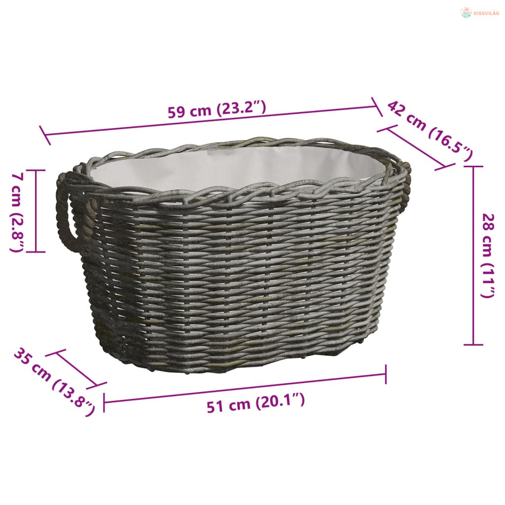 Szürke fűzfa tűzifatároló kosár fogantyúkkal 59 x 42 x 28 cm