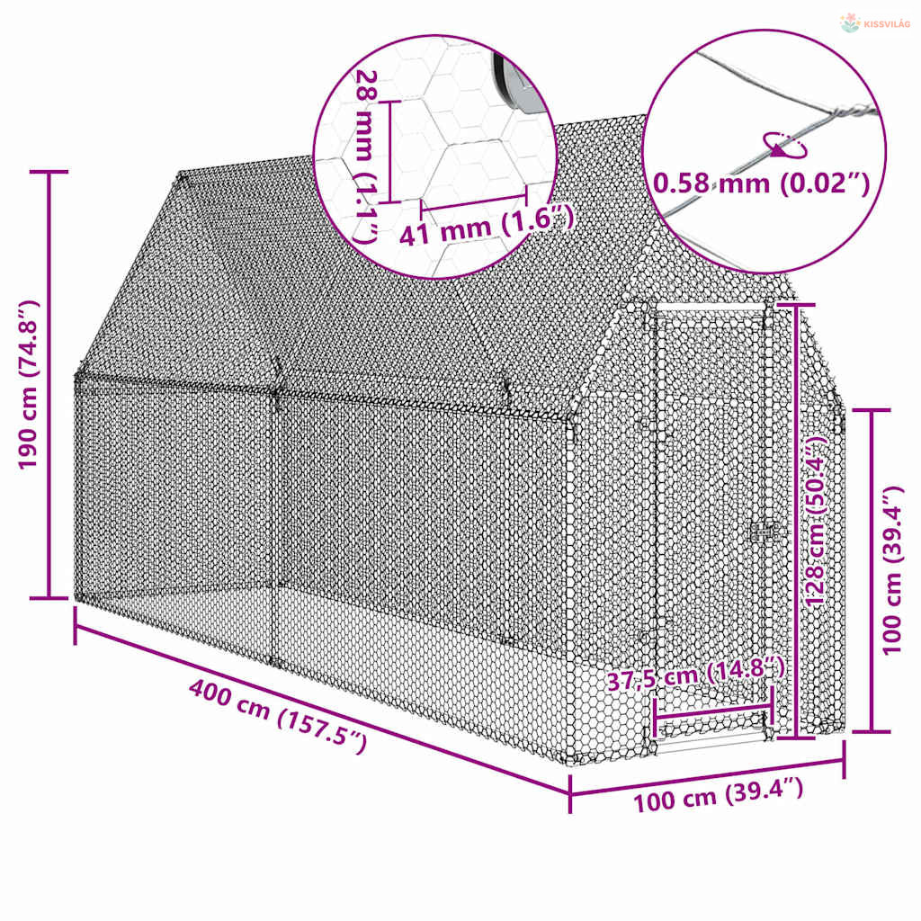 Ez a praktikus és tágas tyúkketrec tökéletes választás csirkék, tyúkok, kacsák és egyéb kisállatok elkerítéséhez kültéren, és garantálja azok kényelmét.