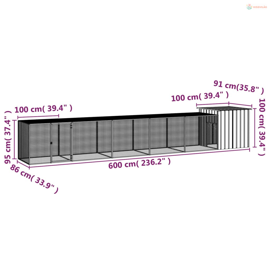 Szürke horganyzott acél csirkeketrec 600 x 91 x 100 cm