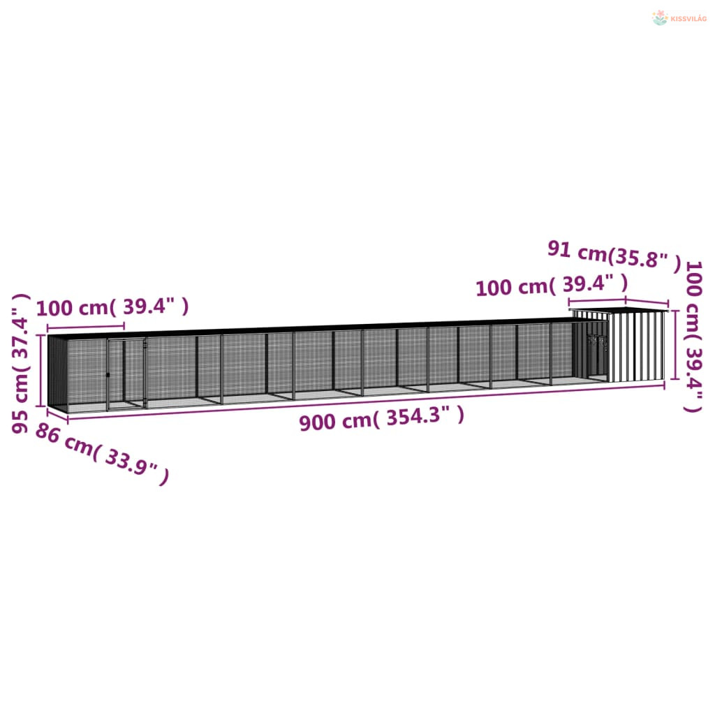 Szürke horganyzott acél csirkeketrec 900x91x100 cm