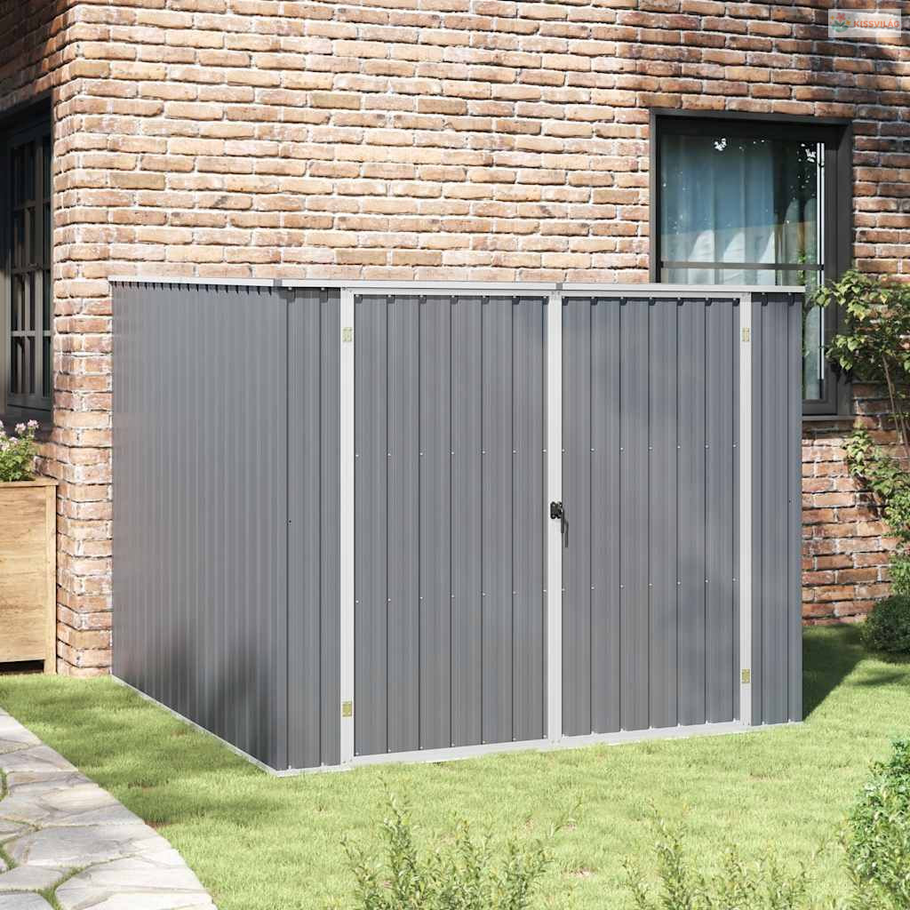 Ez a kültéri tárolófészer horganyzott acélból készült, így kevés karbantartást igényel, emellett rendkívül tartós. Az elején lévő kettős ajtók könnyed be- és kijutást tesznek lehetővé. A lejtős kialakításnak köszönhetően az esővíz magától lefolyik a tetőről.