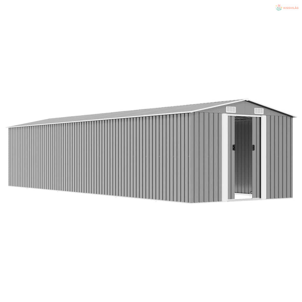Szürke horganyzott acél kerti fészer 257 x 990 x 181 cm