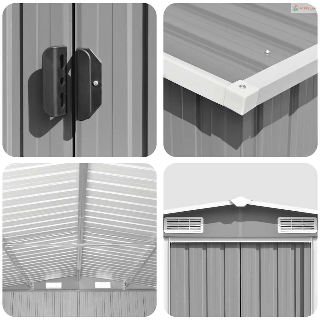 Horganyzott acél kerti fészerünk tökéletes megoldás mindenféle szerszám, kerti bútor és kerti felszerelés tárolására. A kerti fészer nemcsak a portól és piszoktól védi meg a benne tárolt dolgokat, de a széltől és az időjárás viszontagságaitól is.