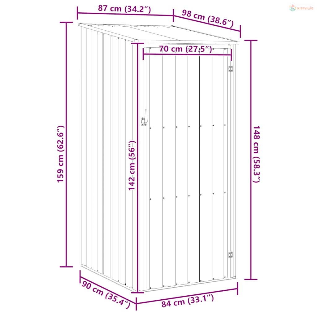 Szürke horganyzott acél kerti fészer 87 x 98 x 159 cm