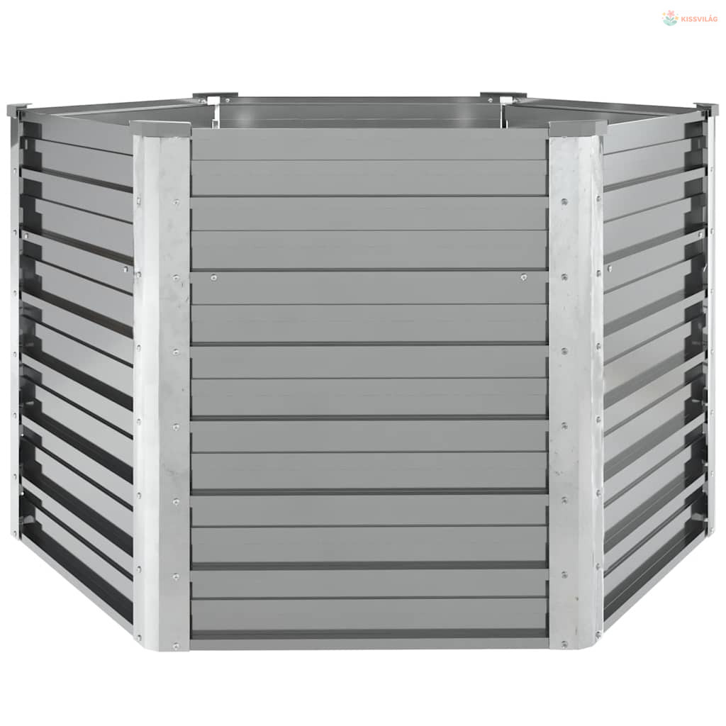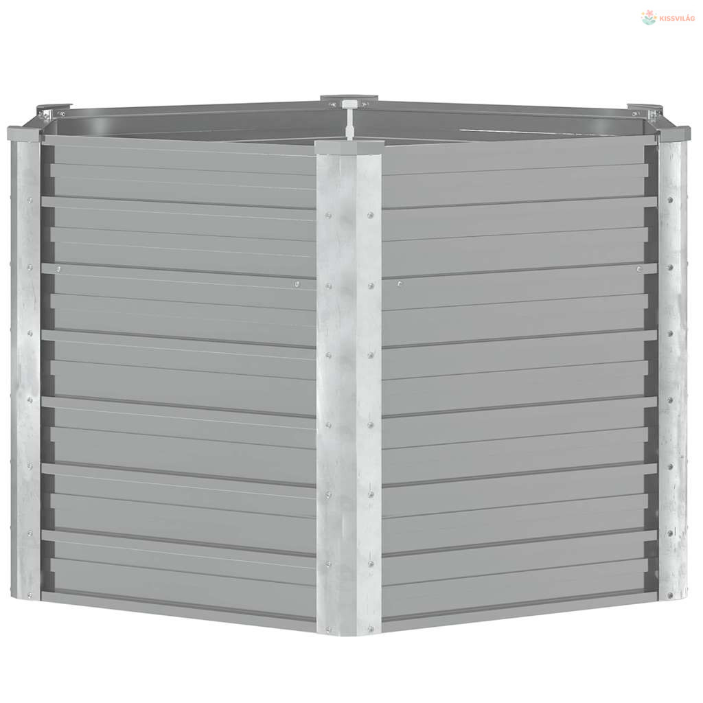 Szürke horganyzott acél kerti magaságyás 129 x 129 x 77 cm