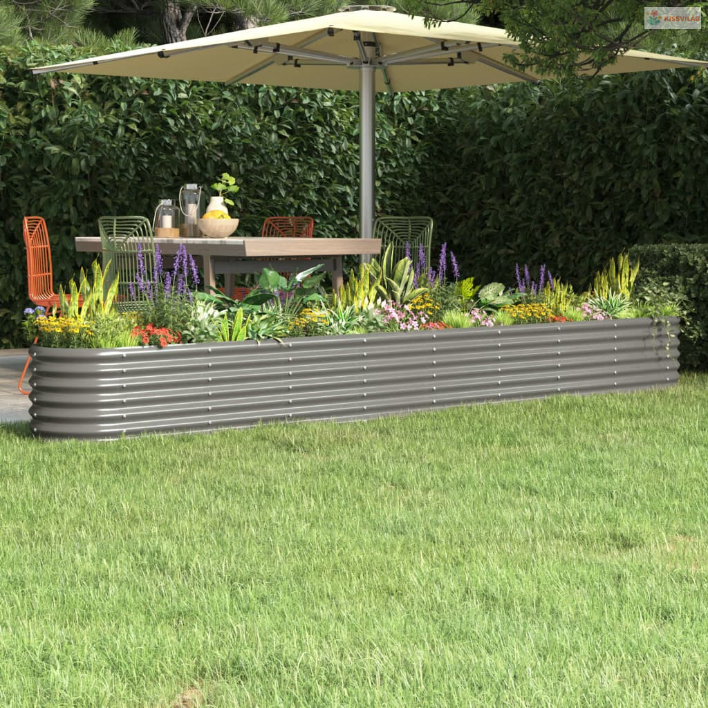 Szürke horganyzott acél kerti magaságyás 332x40x36 cm