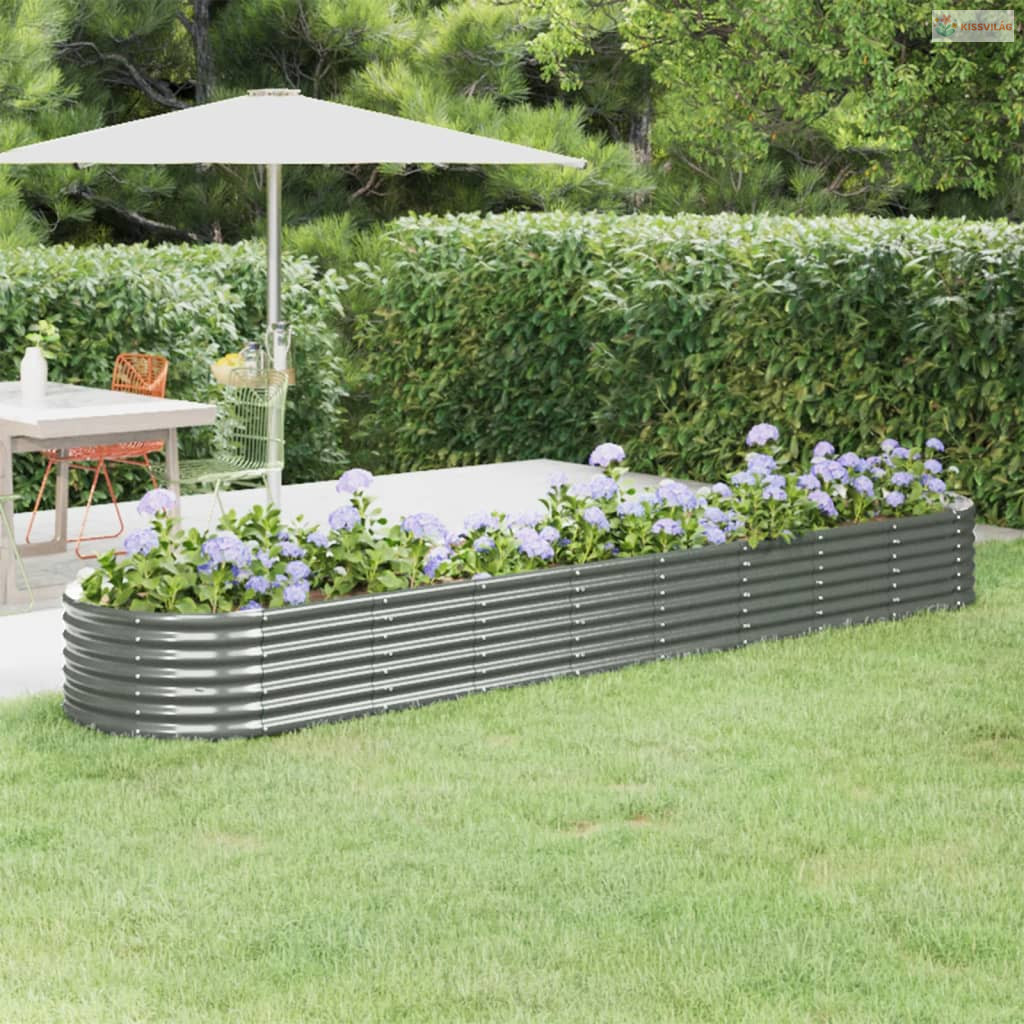 Szürke horganyzott acél kerti magaságyás 368x80x36 cm
