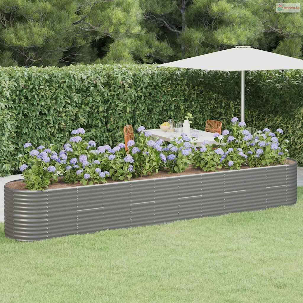 Szürke horganyzott acél kerti magaságyás 440x80x68 cm