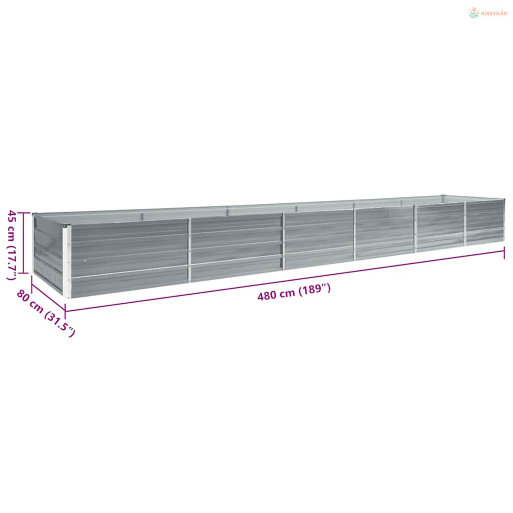 Szürke horganyzott acél kerti magaságyás 480 x 80 x 45 cm