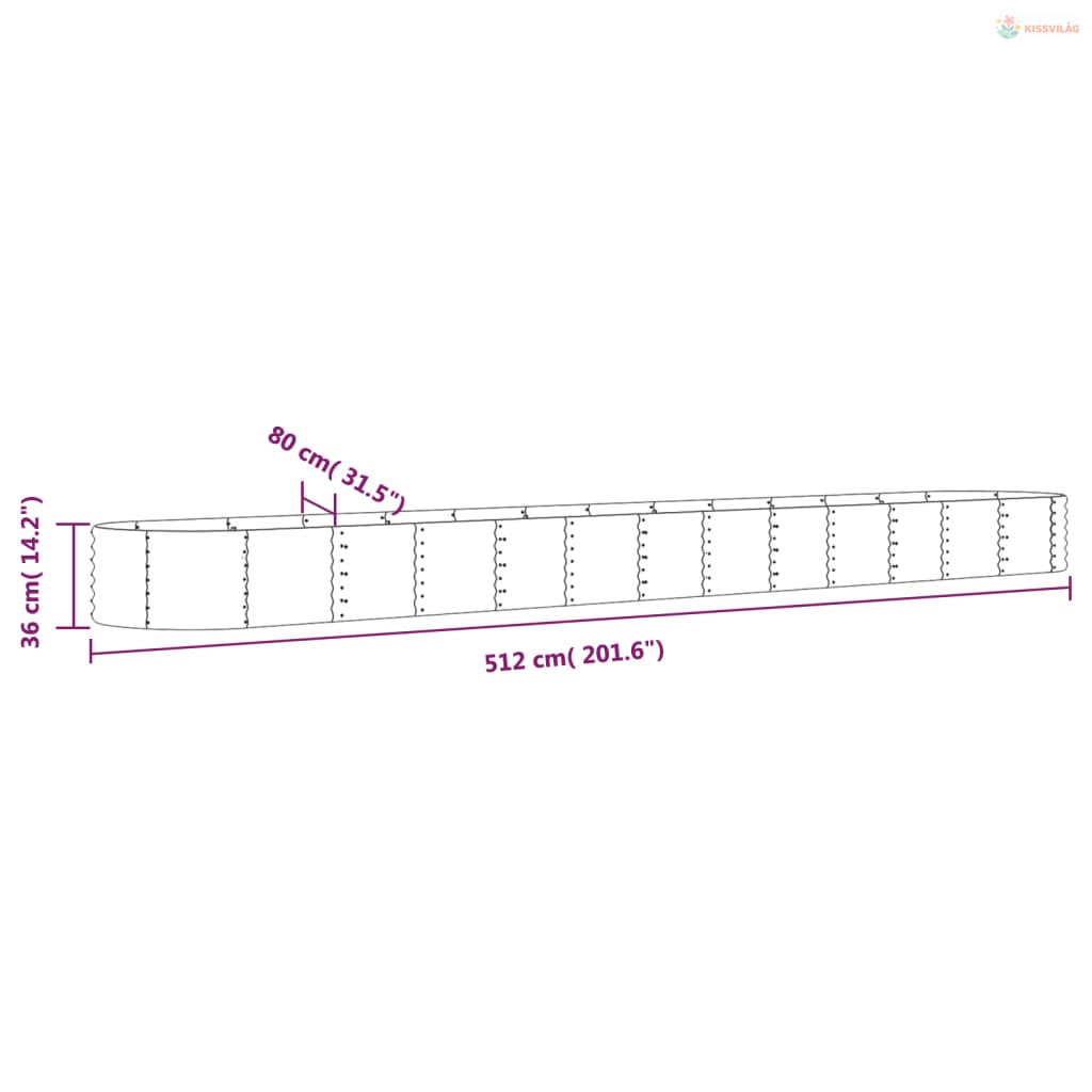 Szürke horganyzott acél kerti magaságyás 512x80x36 cm