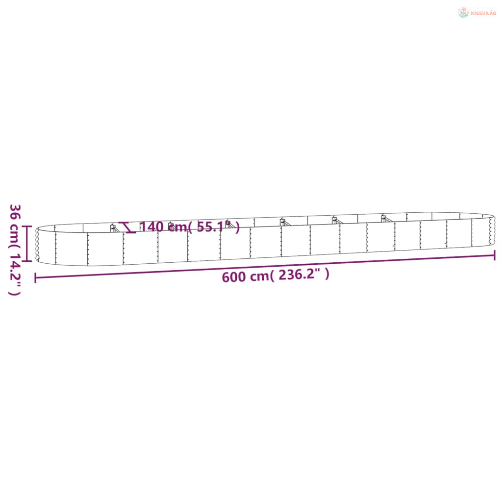 Szürke horganyzott acél kerti magaságyás 600x140x36 cm