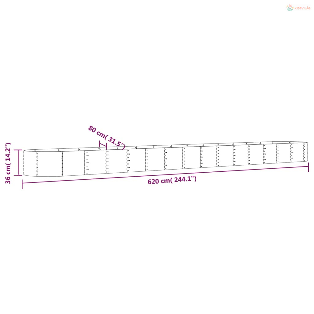 Szürke horganyzott acél kerti magaságyás 620x80x36 cm