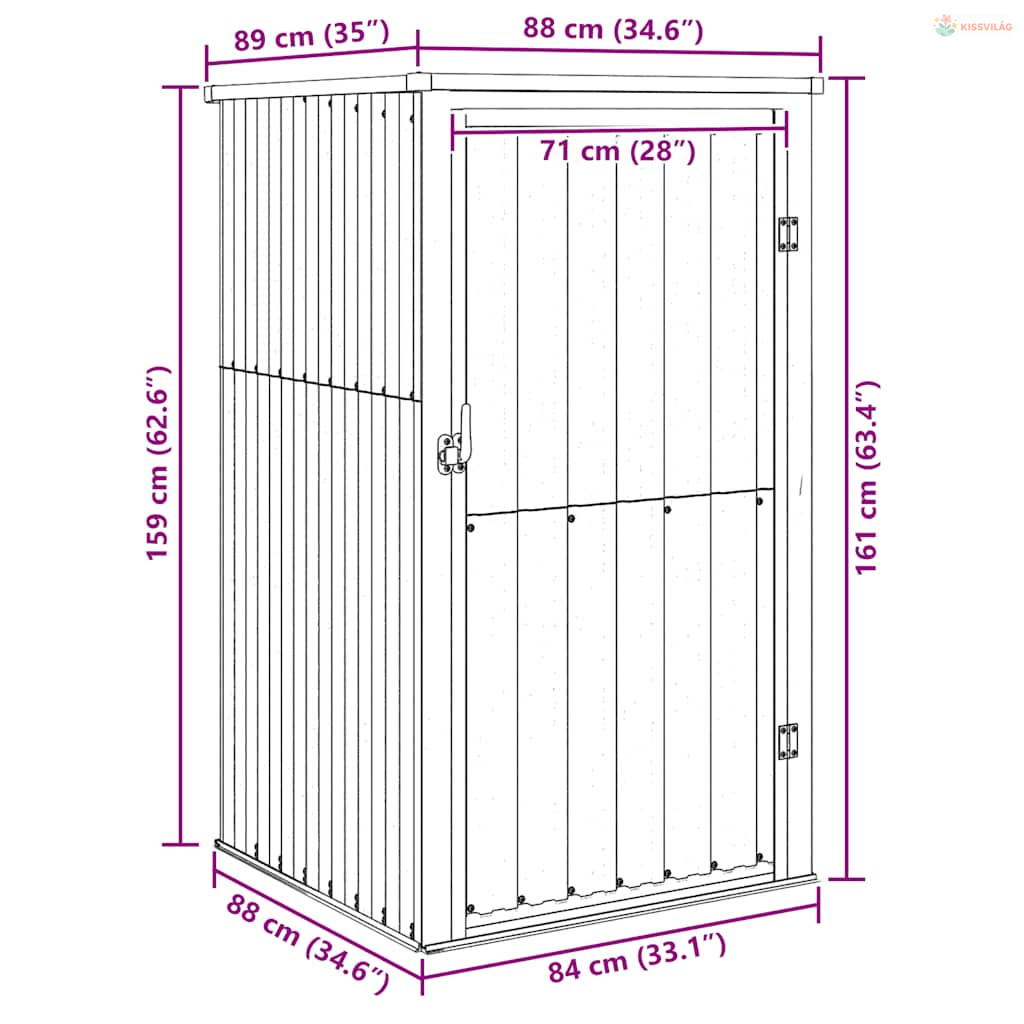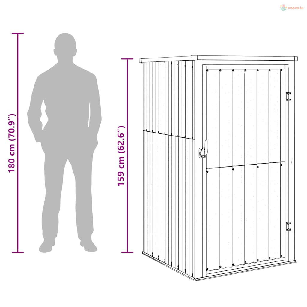 • Praktikus fogantyú: A kerti szerszámos fészer fogantyúval rendelkezik, ami megkönnyíti a be- és kiszállást.