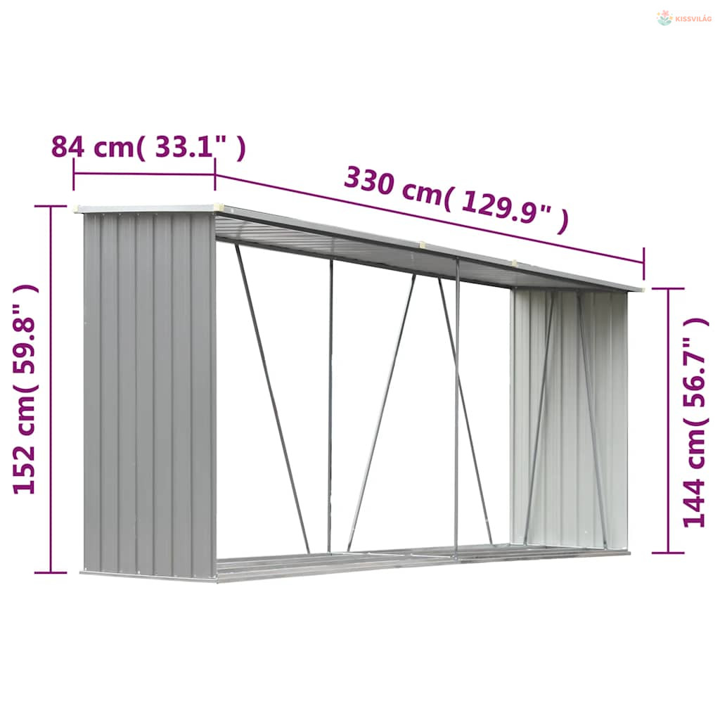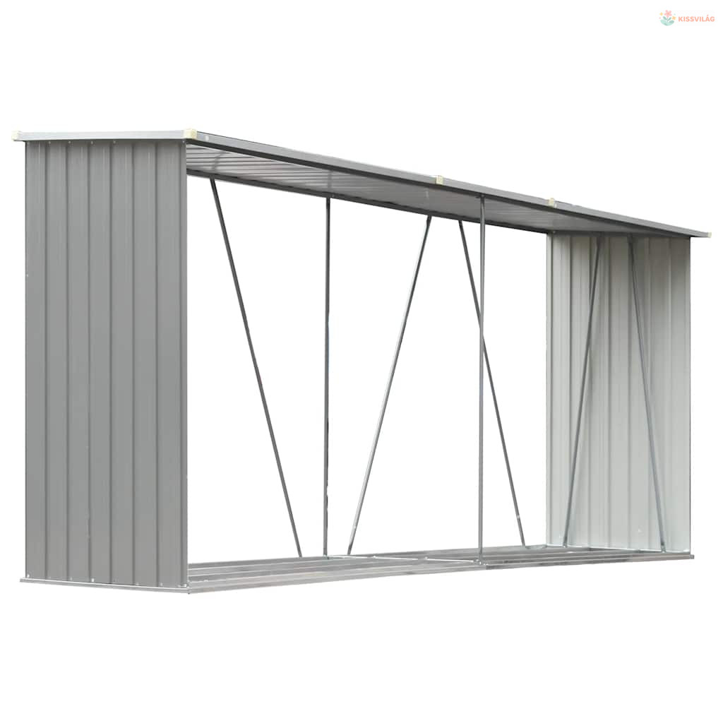Szürke horganyzott acél kerti tűzifatároló 330 x 84 x 152 cm