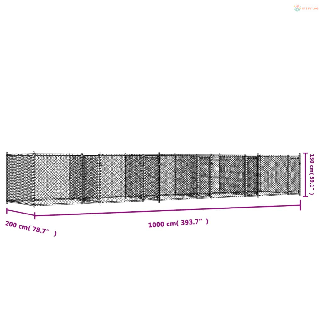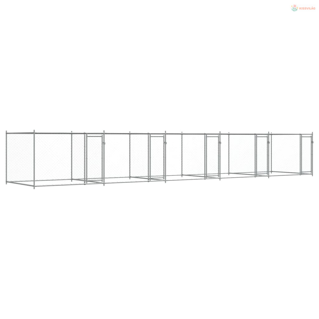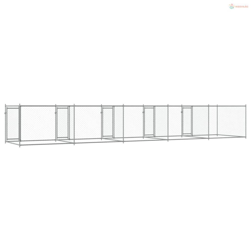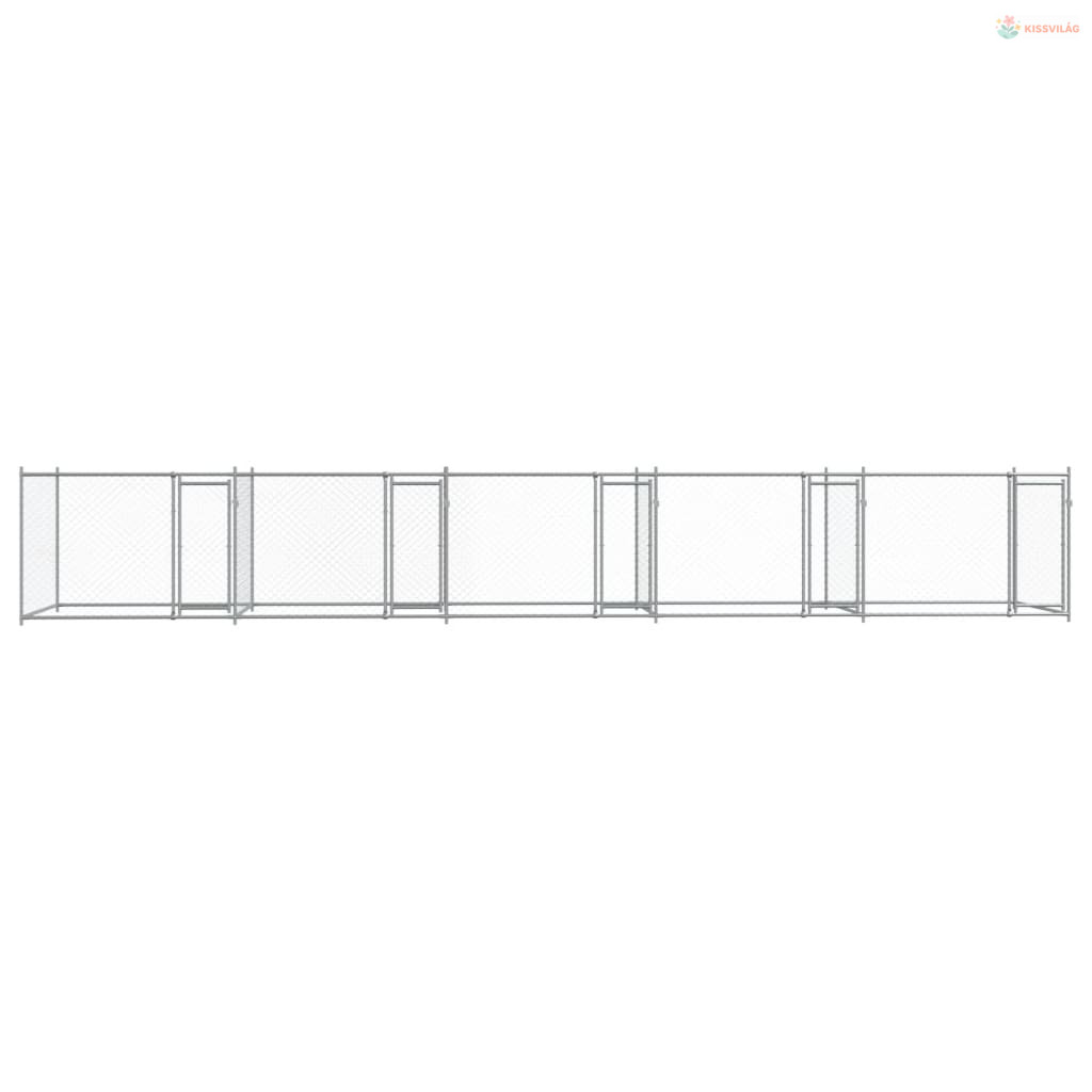 Szürke horganyzott acél kutyaketrec ajtókkal 10 x 2 x 1,5 m