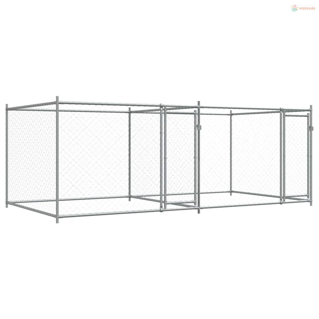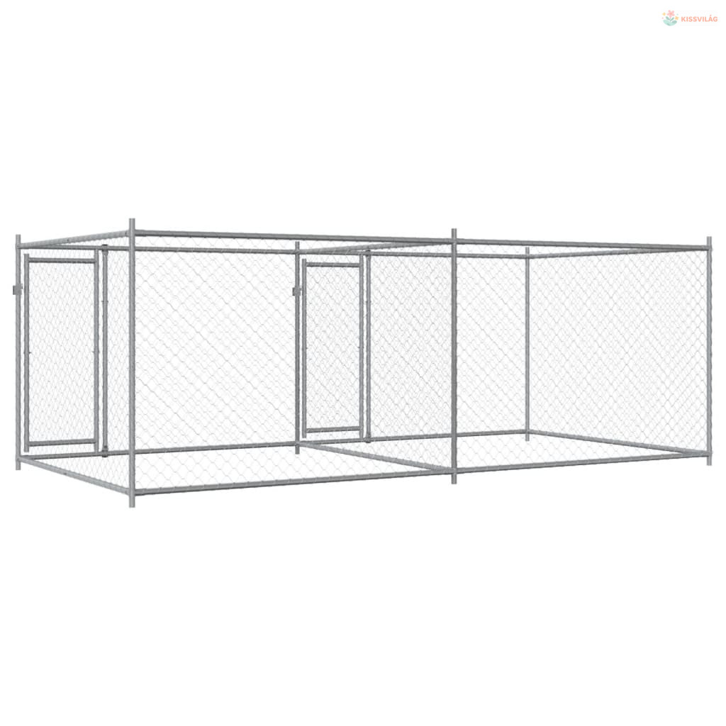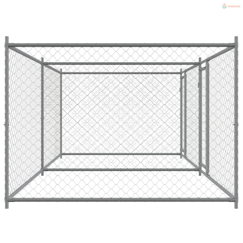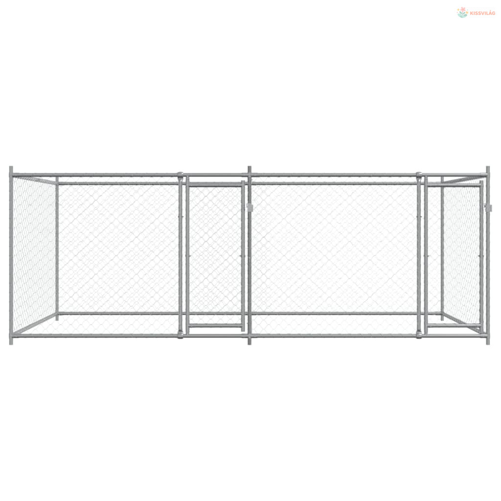 Szürke horganyzott acél kutyaketrec ajtókkal 4 x 2 x 1,5 m