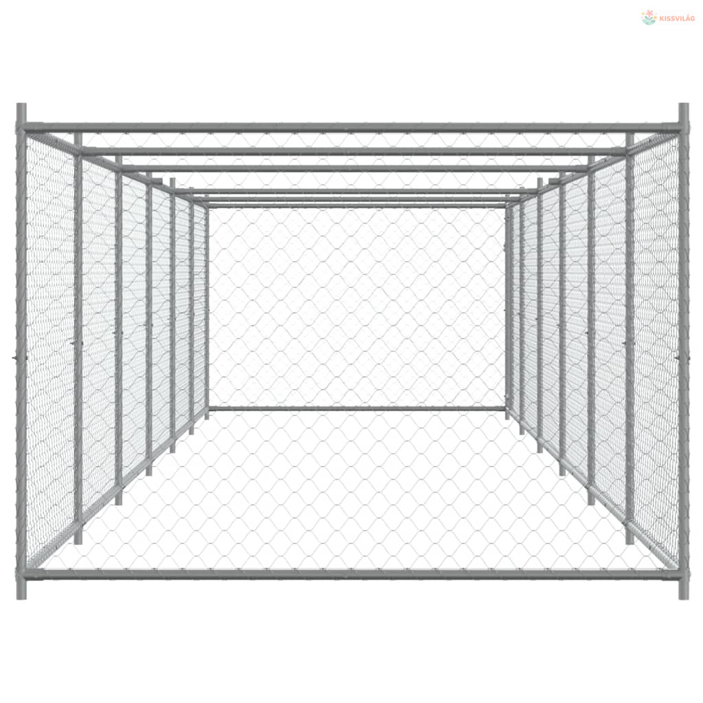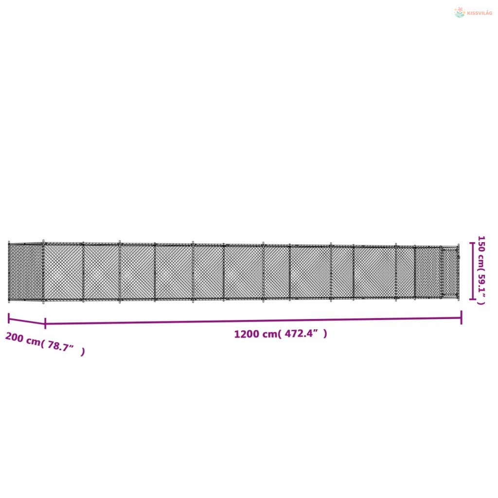 Szürke horganyzott acél kutyaketrec ajtóval 12 x 2 x 1,5 m