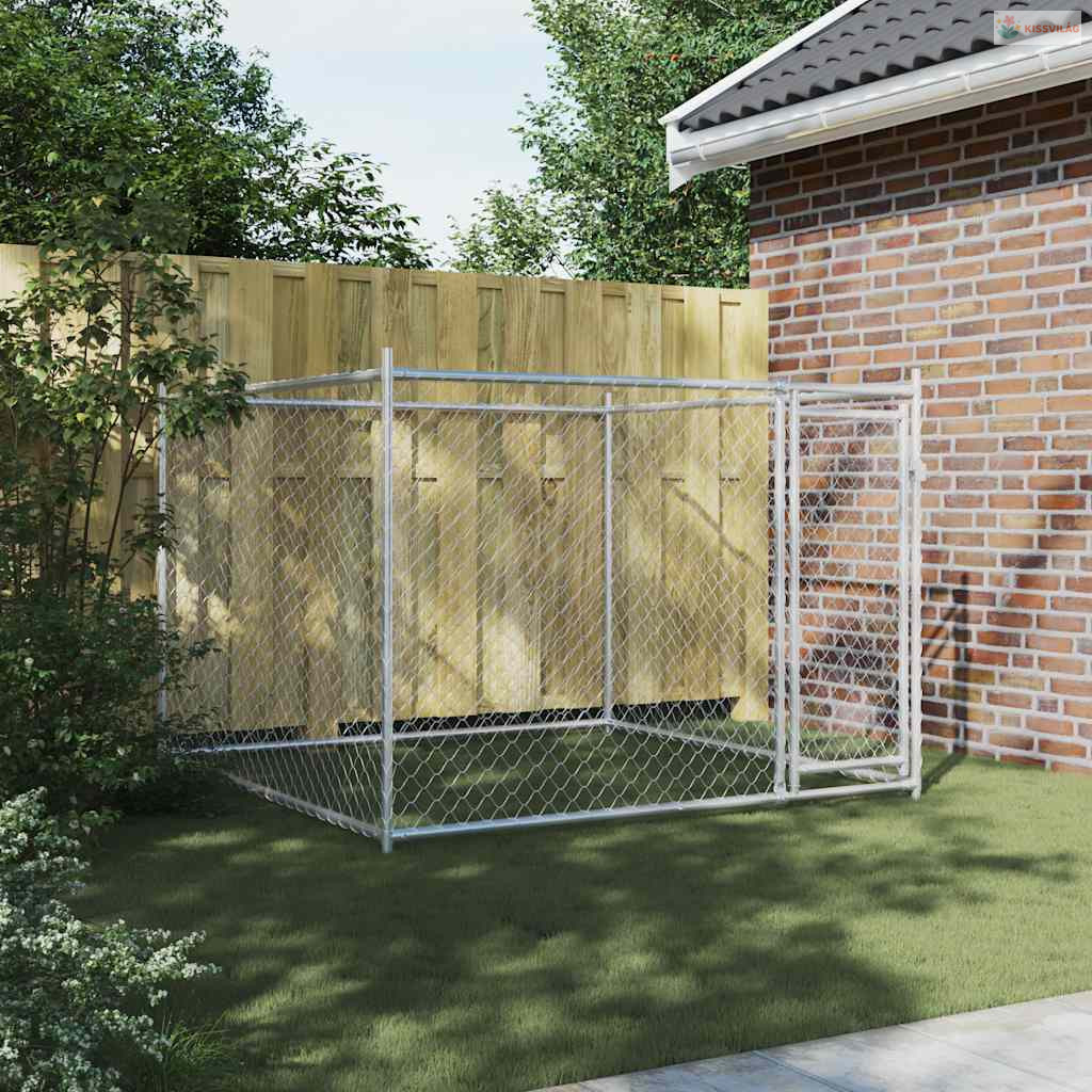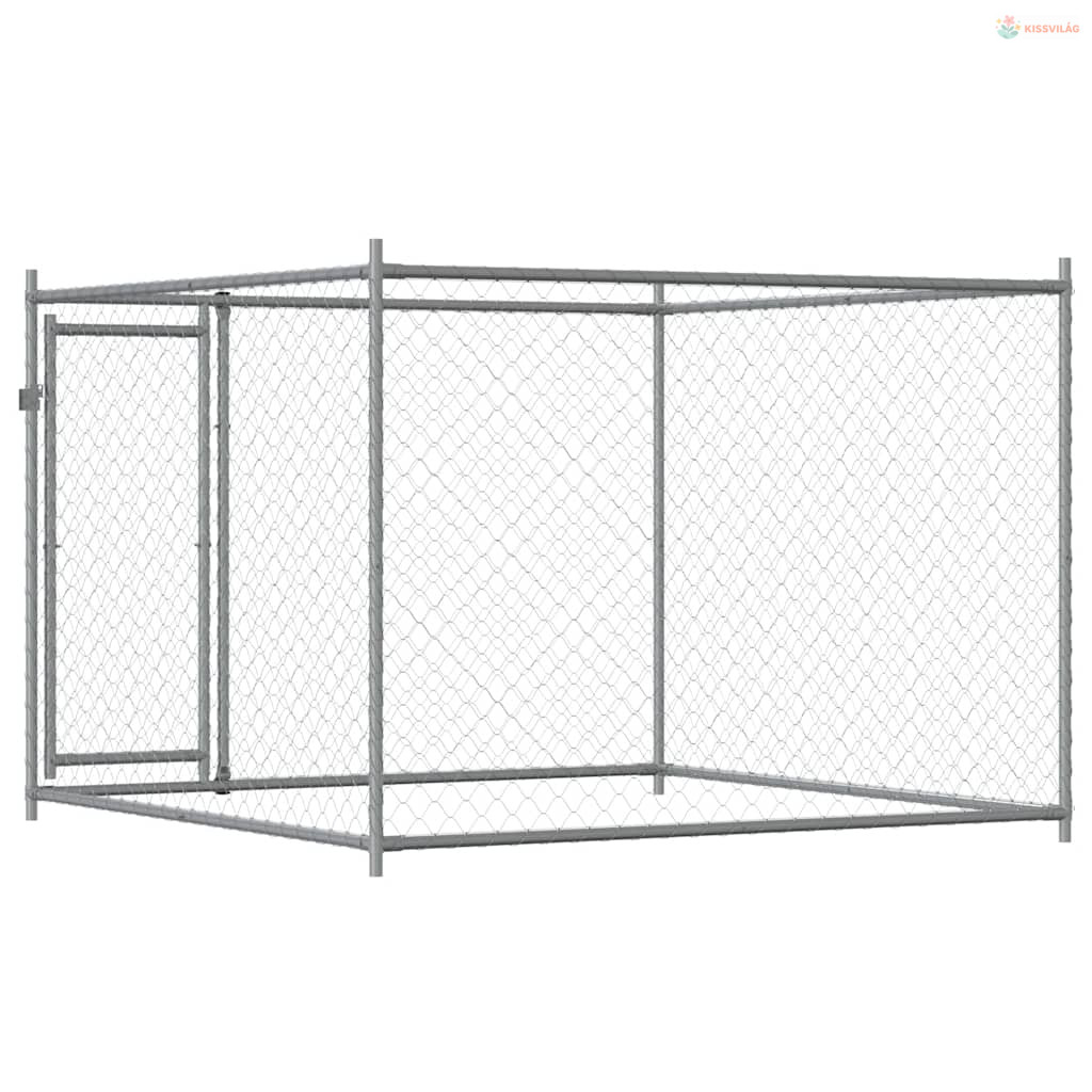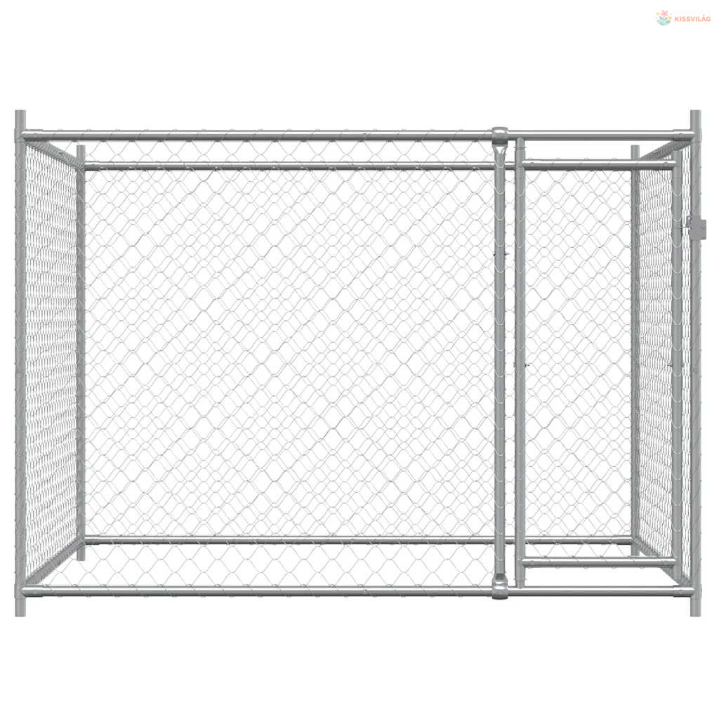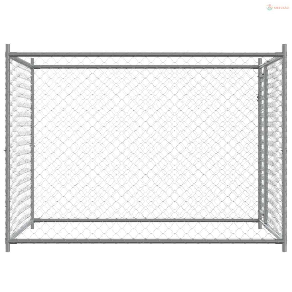 Szürke horganyzott acél kutyaláda ajtóval 2x2x1,5 m