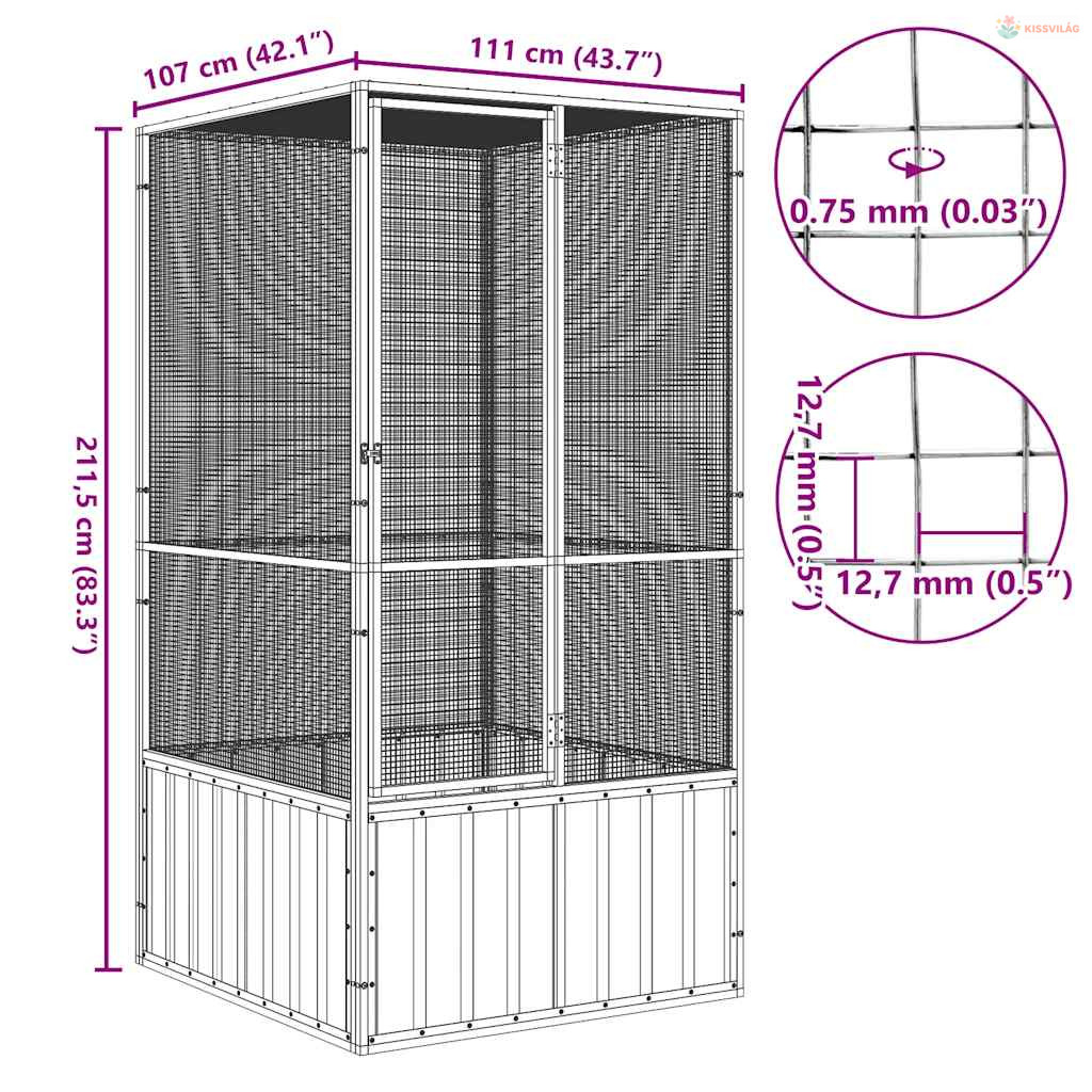 Szürke horganyzott acél madárketrec 111x107x211,5 cm