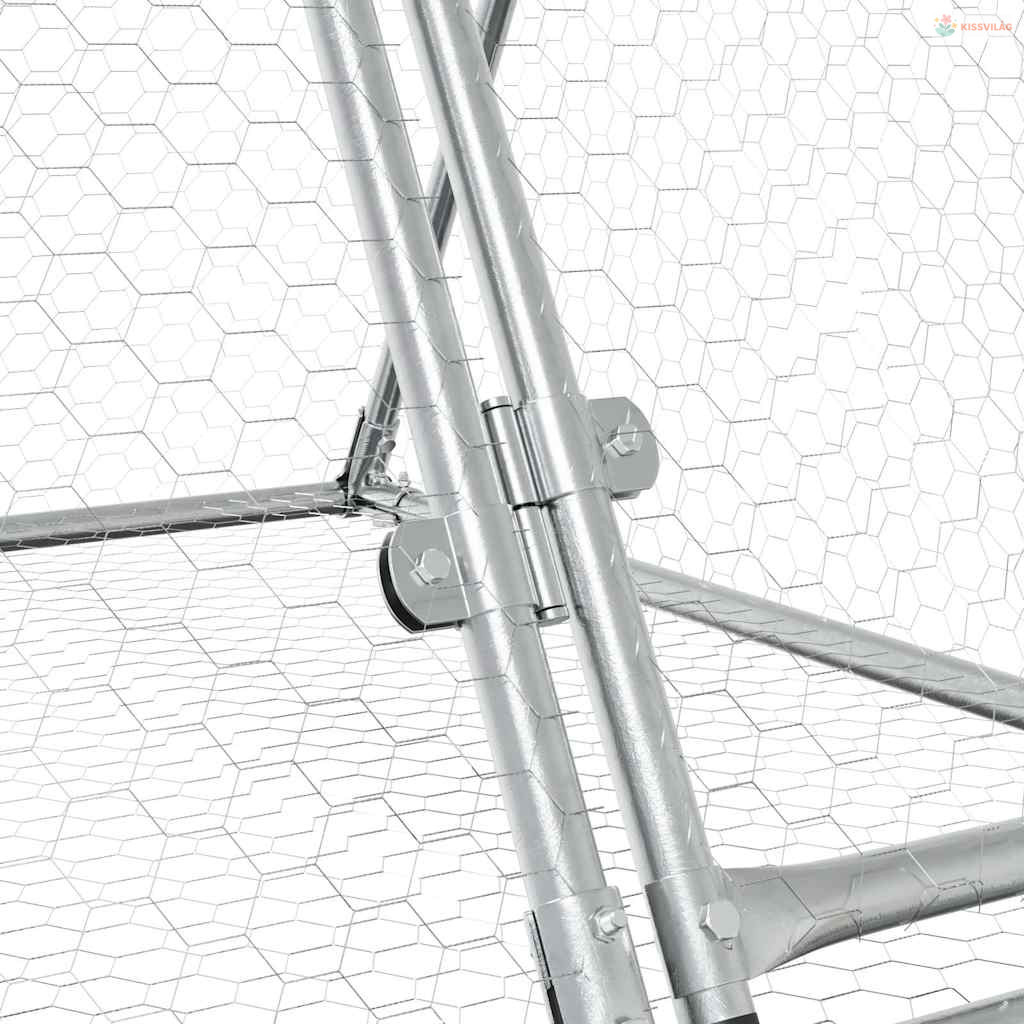 • Tartós és robusztus váz: A nyúlketrec horganyzott acélból készült. Az acél egy rendkívül kemény és erős anyag. Erős szerkezetet és stabilitást biztosít. A horgonyzás jobb védelmet nyújt a korrózió ellen, és hasznos a szabadban és zord környezetben használt termékeknél.