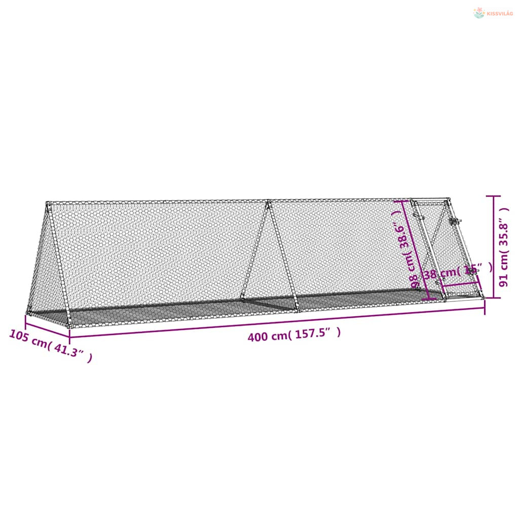 Szürke horganyzott acél nyúlketrec 400 x 105 x 91 cm