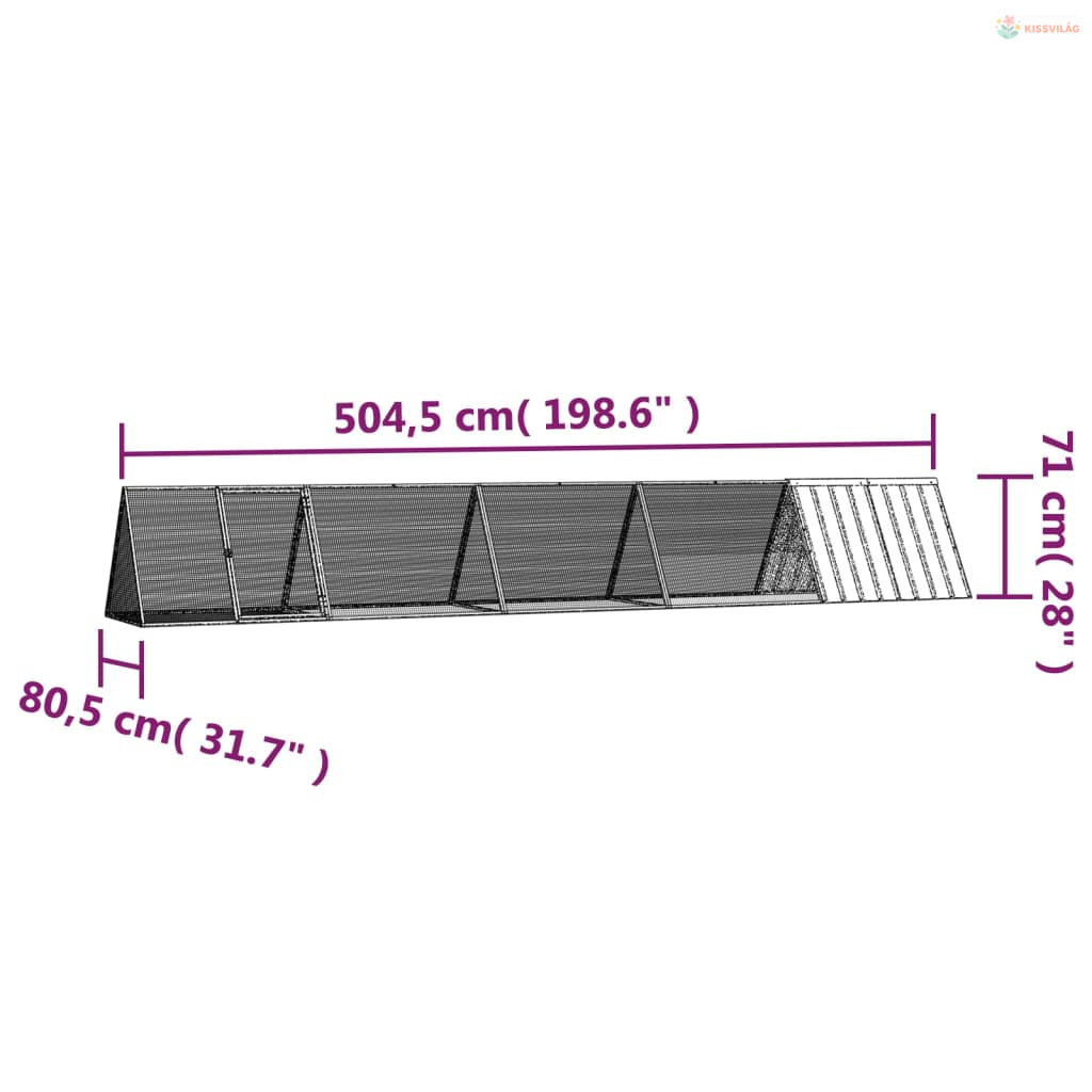 • Stabil felépítés: A masszív, horganyzott acélszerkezetnek köszönhetően ez a nyúlketrec tartós és időtálló.