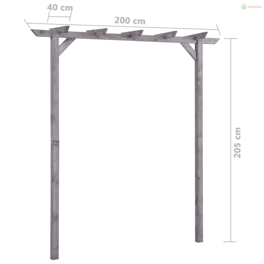 Szürke impregnált fenyőfa kerti pergola 200 x 40 x 205 cm