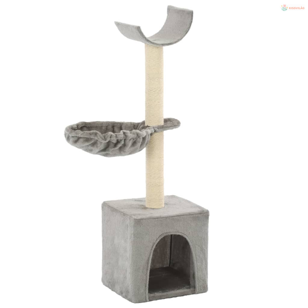 Szürke macskabútor szizál kaparófákkal 105 cm