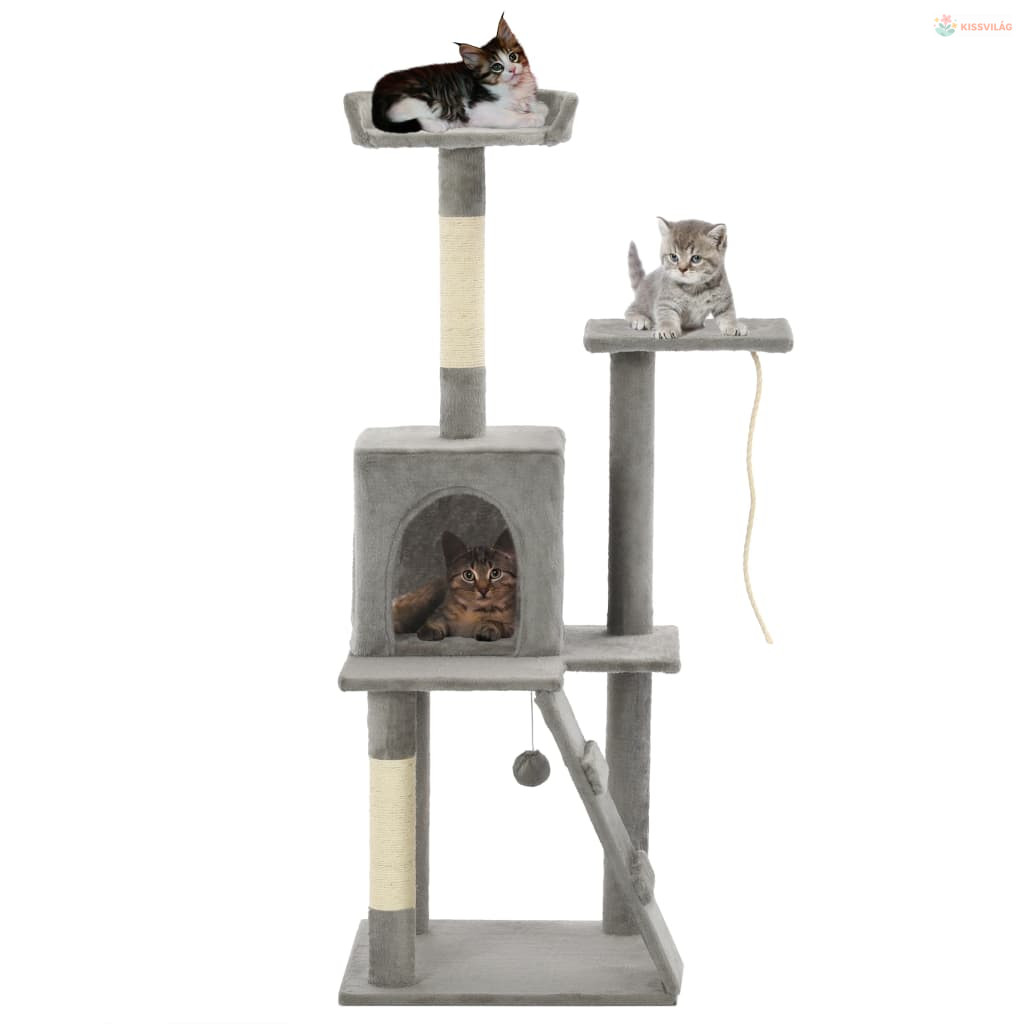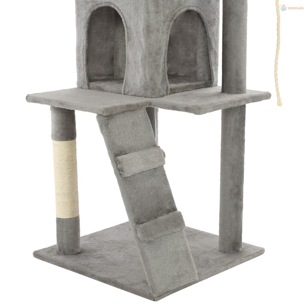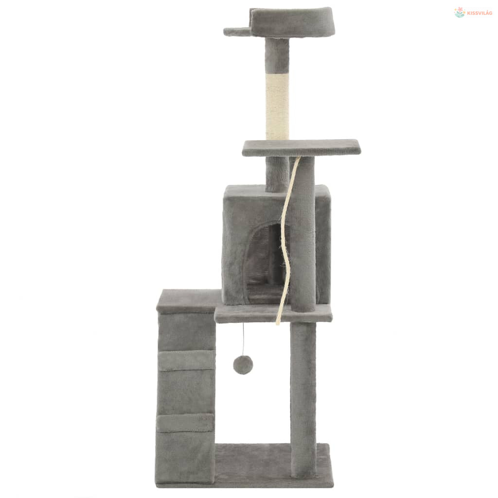 Szürke macskabútor szizál kaparófákkal 120 cm