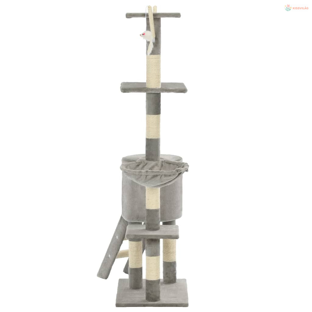 Szürke macskabútor szizál kaparófákkal 138 cm