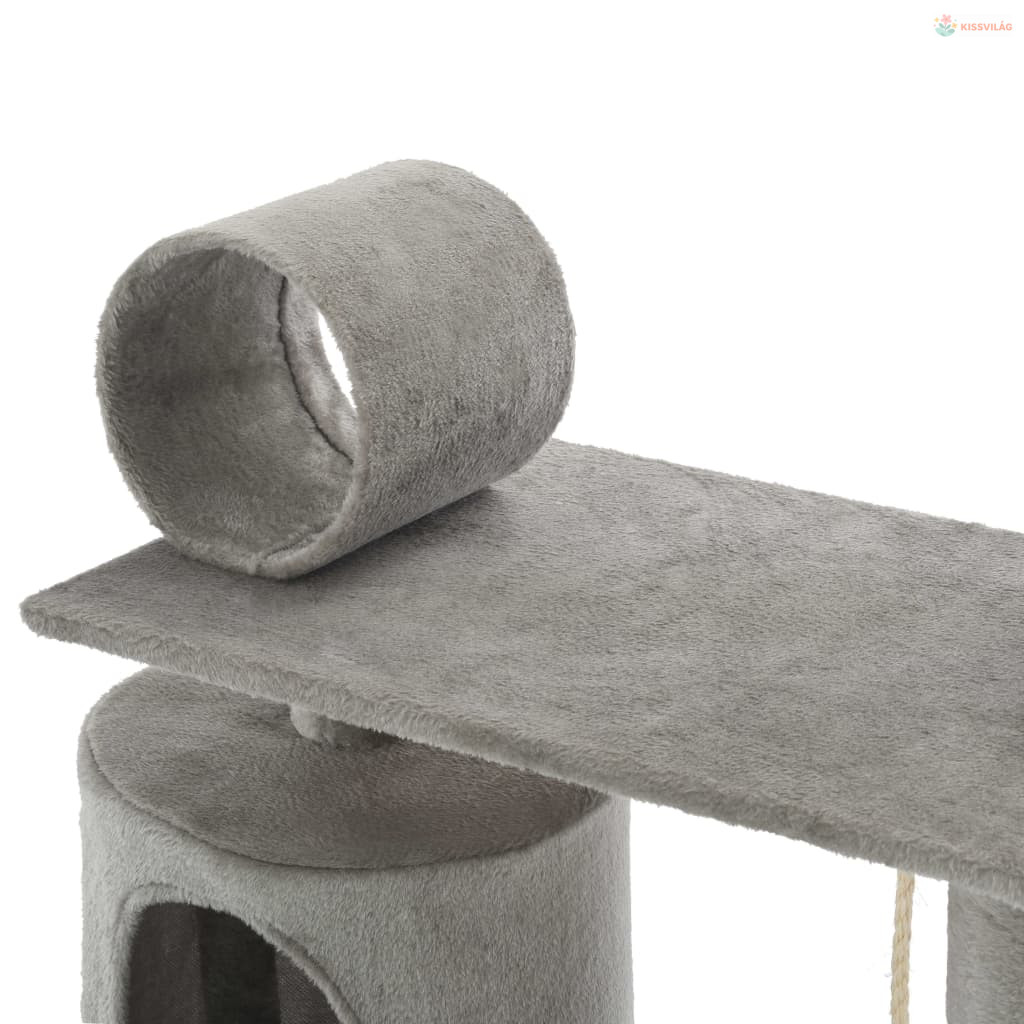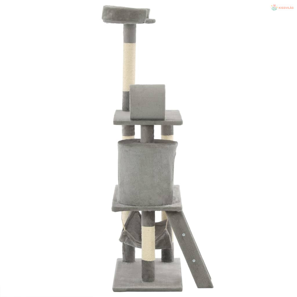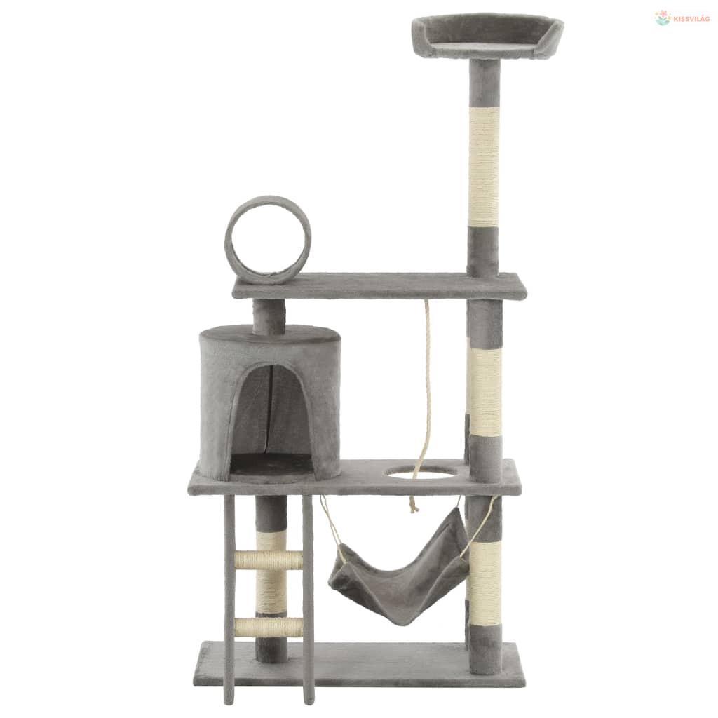 Szürke macskabútor szizál kaparófákkal 140 cm
