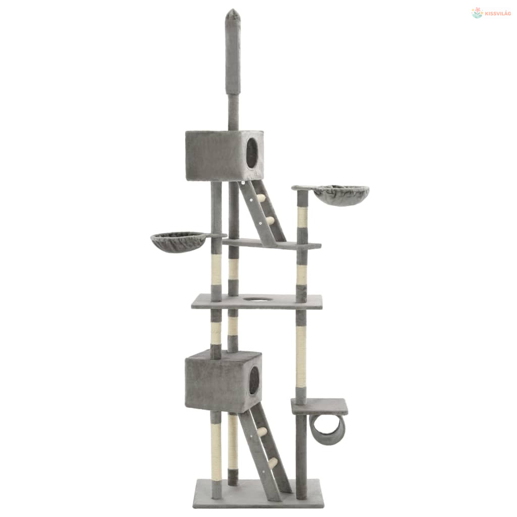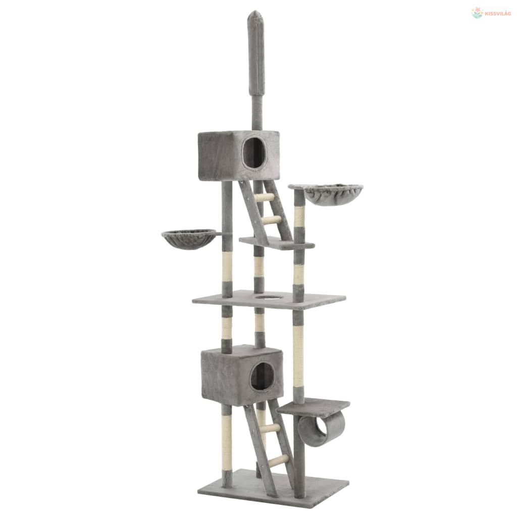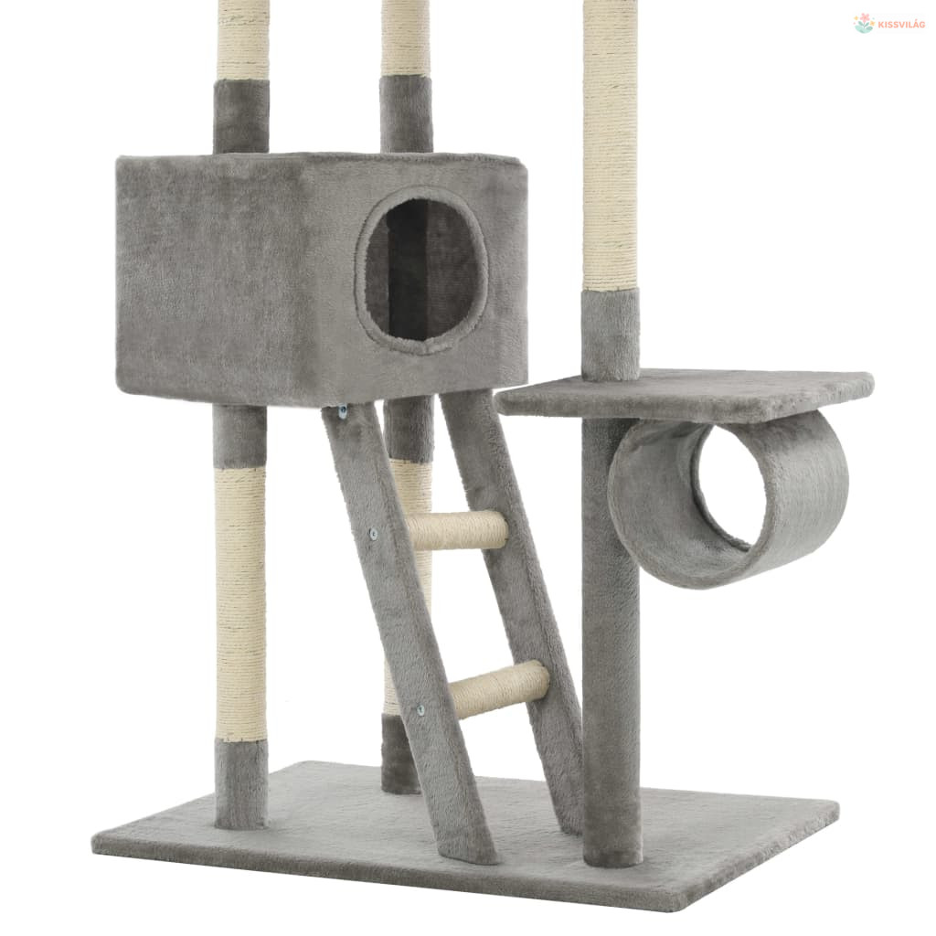 Szürke macskabútor szizál kaparófákkal 230-260 cm